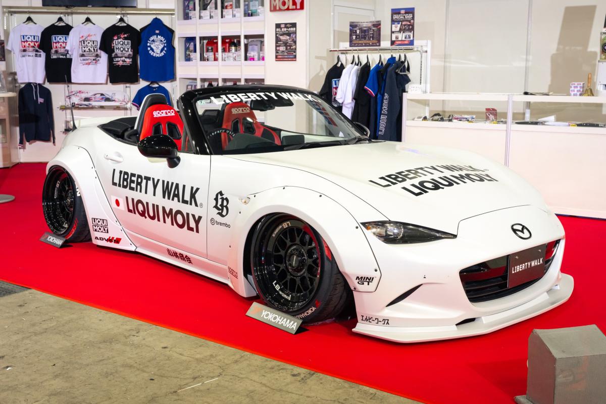 LIQUI MOLY(リキモリ)とLIBERTY WALK(リバティーウォーク)がタッグを組んだ、圧巻のコラボレーション・コンセプトカー。<br>ベースは、日本のライトウェイトスポーツの象徴「NDロードスター」。LBWKの代名詞であるビス留めオーバーフェンダーで武装し、車高は極限までローダウン。足元にはBrembo(ブレンボ)製キャリパー、インテリアには鮮烈なSparco(スパルコ)のレッドシートを覗かせます。<br>ドイツの「高性能」(LIQUI MOLY)、日本の「ストリート魂」(LBWK)、そしてイタリアの「情熱」(Brembo/Sparco)が完璧に融合した、国境を超える究極のカスタムです。