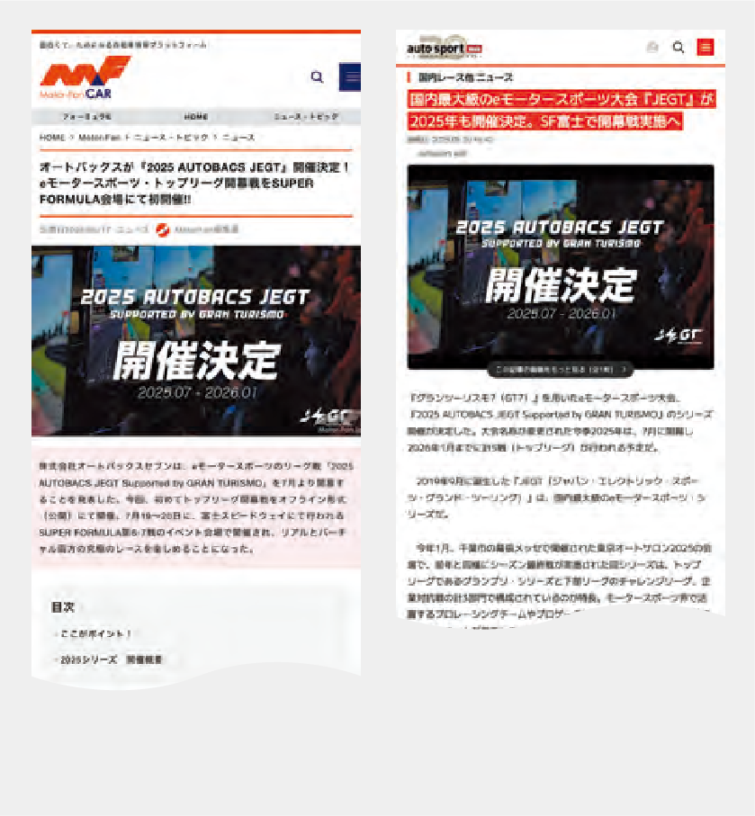 ニュースリリース配信を通じて「MotorFan.jp」「auto sport web」など複数の専門メディアに記事掲載され、大きな反響を獲得。