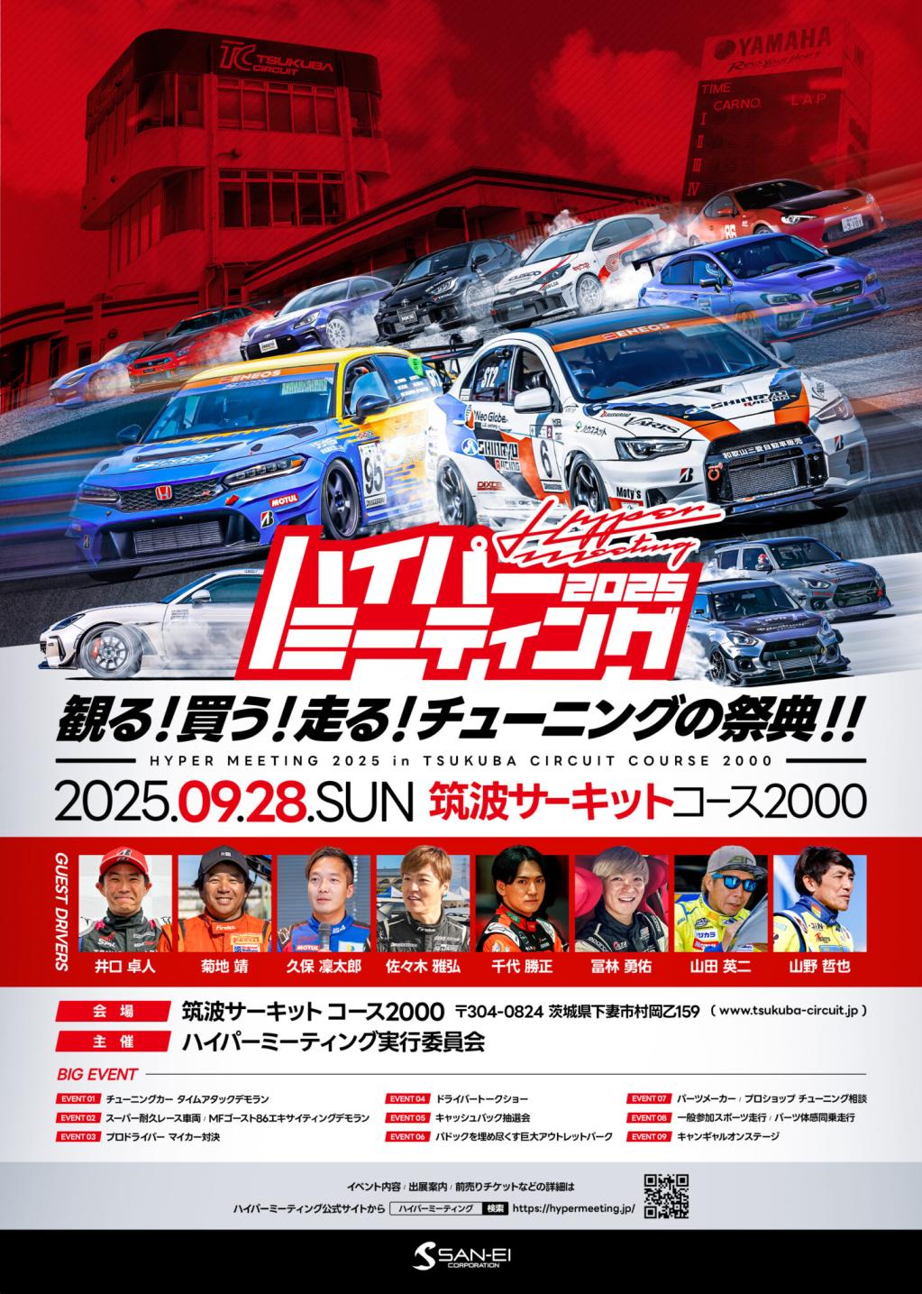 2025年9月28日(日)、筑波サーキットコース2000にてイベント「ハイパーミーティング2025」が開催されます。「ハイパーミーティング」は、チューニングカーや最新パーツを体感できる走行イベントで、試乗・展示・グルメなど多彩なコンテンツを楽しめるカスタムカーの祭典です。2025年は筑波サーキットで6年ぶりに復活し、見る・買う・走るをテーマに盛り上がります。