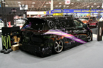 ■ベース車両:トヨタヴェルファイア ■エンジン:ワンオフ4本出しマフラー ■エクステリア:DAD フロントバンパー、オートクチュール サイドステップ、アドミレイション リヤスポイラー、M.ベンツ純正ボンネットダクト、ジャンクションプロデュース フェンダーダクト、エルドラード ボンネットスポイラー、ヘッドライト&テールランプLED加工、M.ベンツSクラス純正フォグランプ(加工)■フットワーク:ボンドワールド エアサスペンション、BBS LMチャンピオンエディション(F:20×9.0J R:20×10.0J)