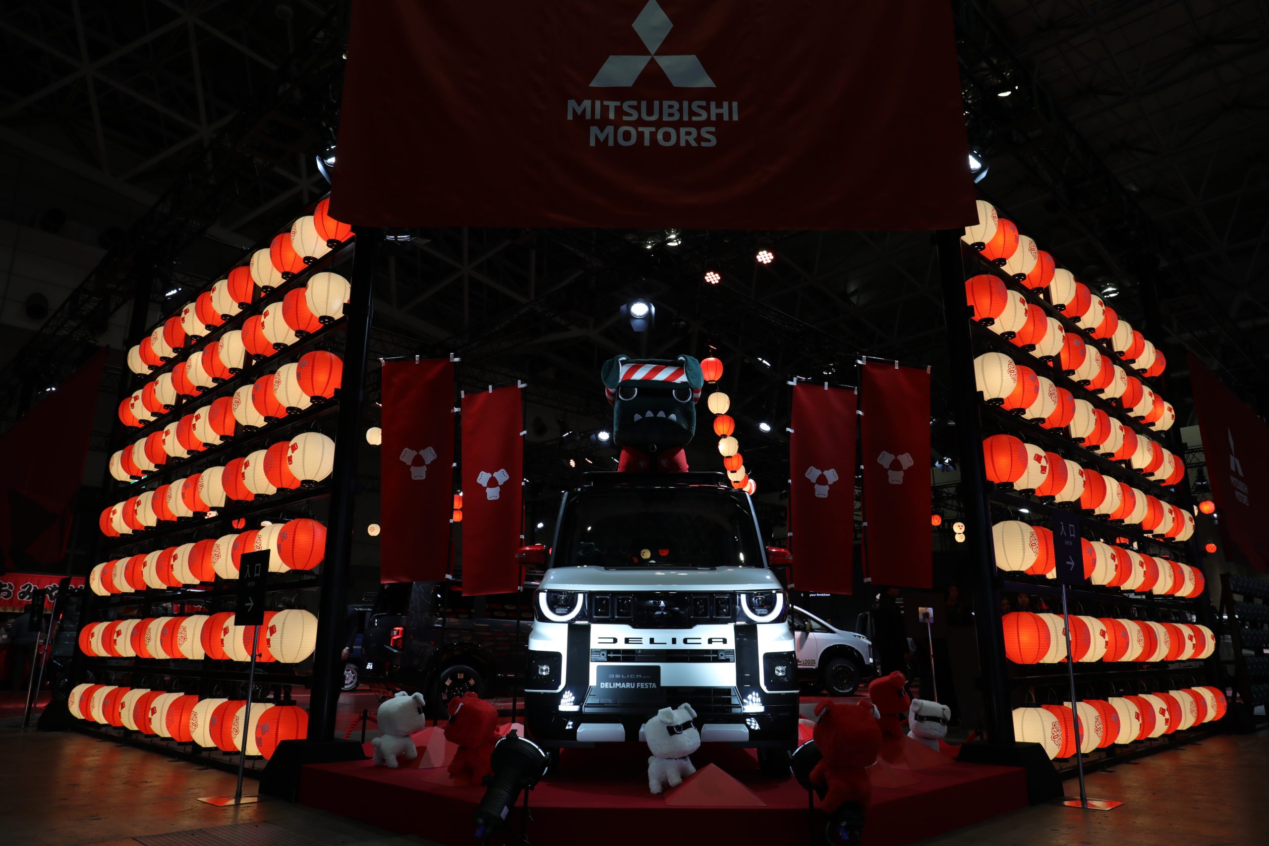 大人気となったキャラクター「デリ丸。」が法被を着て、お祭りスタイルに変身した「デリカミニDELIMARU FESTA(デリ丸。フェスタ)」に乗って登場。「デリカ祭り」を象徴するこの1台が、皆さんのご来場をお待ちしています。