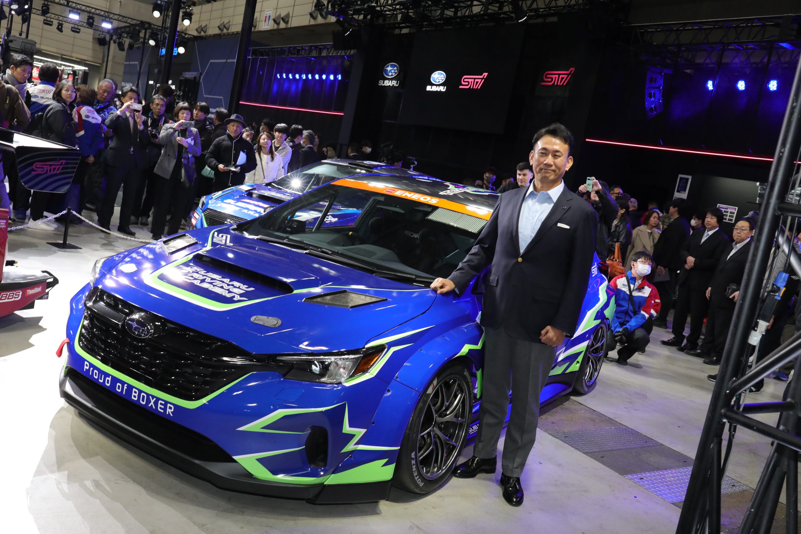 SUBARUは、モータースポーツ統括会社であるSTI(スバルテクニカルインターナショナル株式会社)と共同で、東ホール7にブースを構えています。同社は、パフォーマンスとアドベンチャーという二つのシーンを盛り上げる取り組みを実施すると発表していますが、株式会社SUBARU 執行役員CTO室長の岡本一樹氏によると、「今年の東京オートサロン2026では、パフォーマンスに特化した展示を実施中」とのこと。