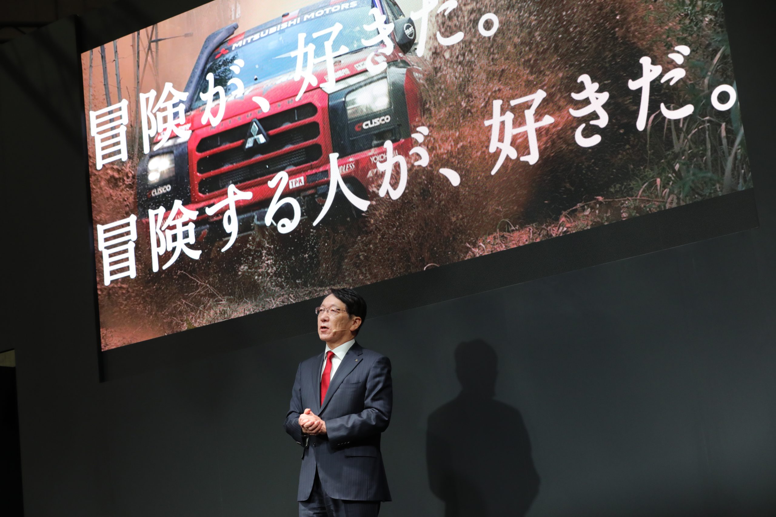 10時から始まったプレスカンファレンスでは、同社取締役代表執行役社長兼最高経営責任者の加藤隆雄氏が登壇。力強さと機能性を演出したそれぞれのカスタムカーや、アジアクロスカントリーラリーに実際に参戦した車両を展示した理由として、「三菱車と共に、ワクワクする何かが始まるような期待感、新しいことに挑戦してみたくなるような高揚感を感じていただきたいと思います」とコメント。また、2026年には本格的なオフロード性能を持つ新型クロスカントリーSUVが導入されることも明言されました。2026年元旦からスタートした新しい企業広告では、「冒険が好きだ。冒険する人が好きだ。」という新しいキャッチコピーを披露。その企業精神を体現できるブースは、皆さんをワクワクさせてくれることでしょう。