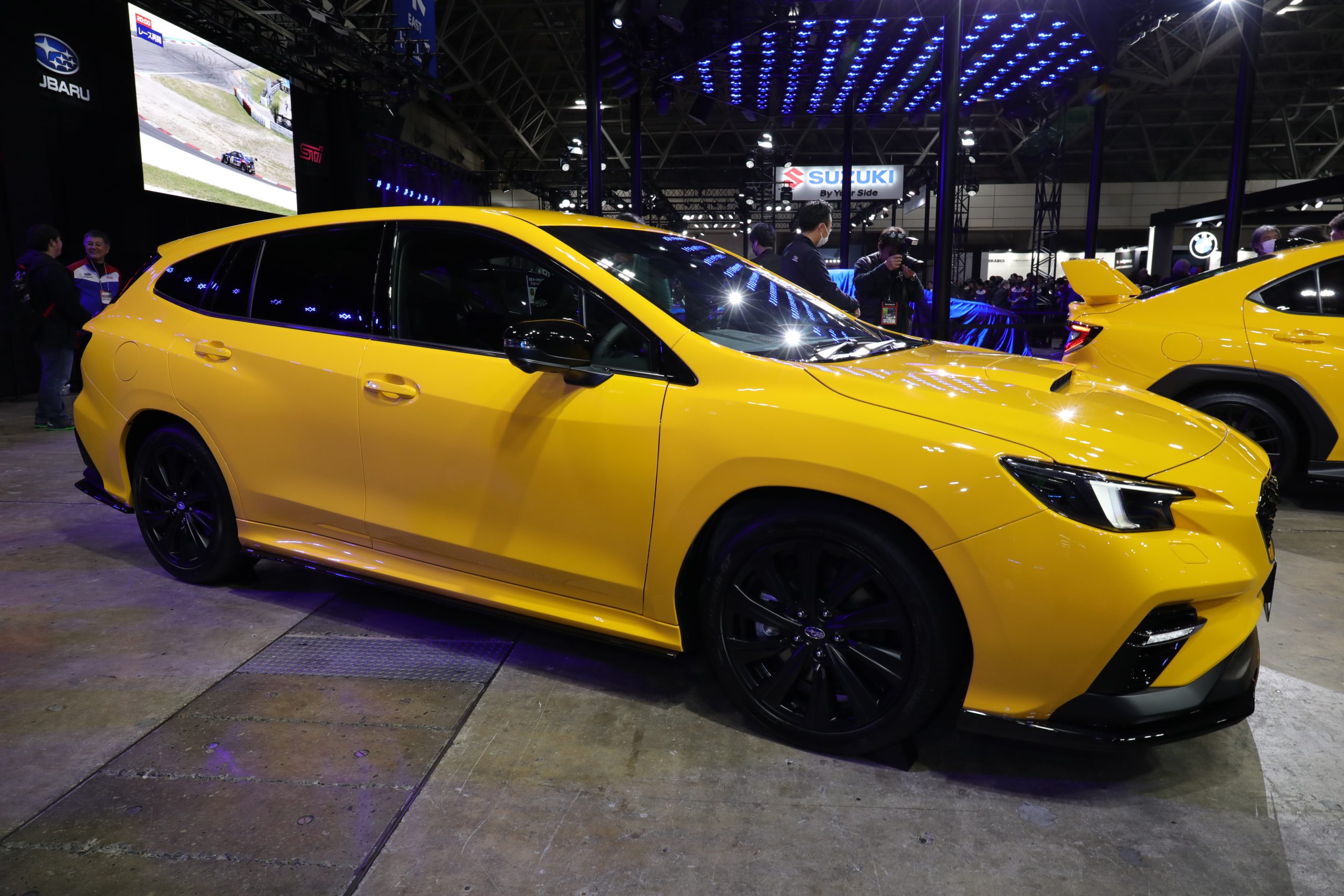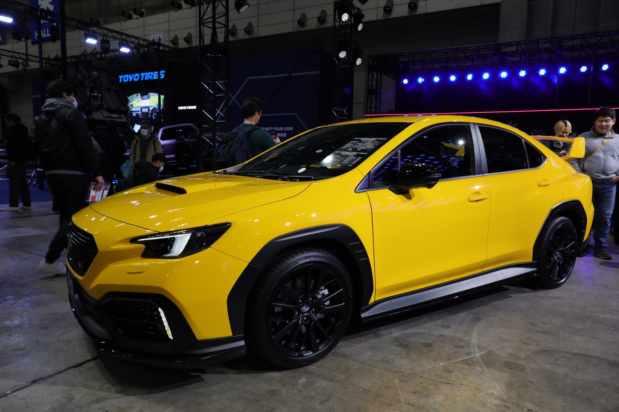 市販される展示車両の中で、最も目立っていたのは特別色となるサンライズイエローに彩られたこちらの2台です。名前はそれぞれ、「LEVORG STI Sport R-Black Limited II STI Performance」と「WRX S4 STI Sport R-Black Limited II STI Performance」と呼ばれ、ヘッドライトやミラーなどをブラックに仕上げることで、スポーティさを強調したスタイルが特徴です。イエローの表皮が特徴なRECARO ※Rマーク入り フロントシートや、スエード調インパネを採用し、存在感を際立たせた仕様となっています。