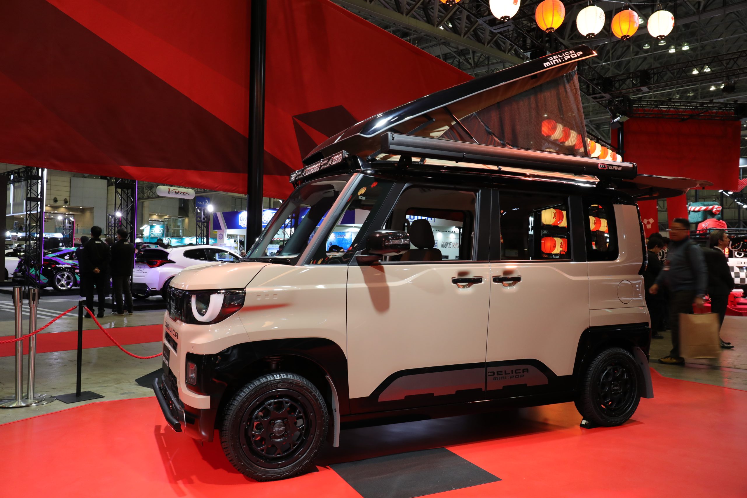 こちらの2台は、「ACTIIVE CAMPER(アクティブキャンパー)」と名付けられた、キャンプを楽しむための仕様が施されています。「デリカD:5」は、キャンピングカーメーカー「ダイレクトカーズ」と、アウトドアブランド「LOGOS(ロゴス)」とのコラボレーションモデル。インテリアには、温もりを感じるホワイトバーチの木目が採用されていました。「デリカミニ」は、ポップアップルーフを採用し、コンパクトなスペースを最大限有効活用するキャンピング仕様です。
