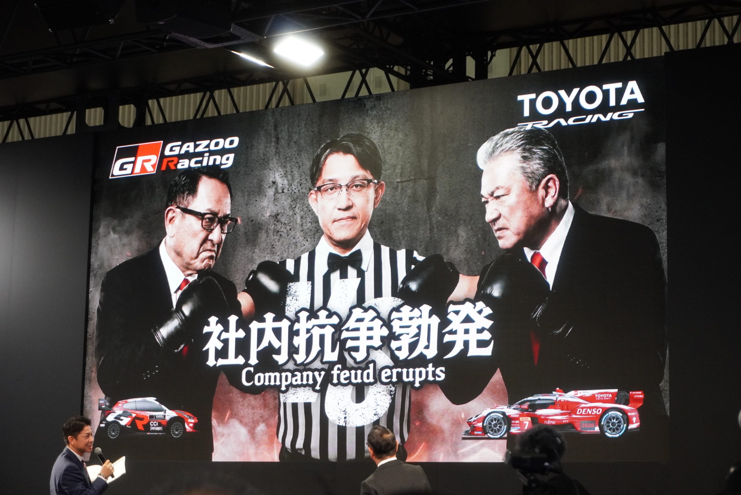 プレスカンファレンスでの発表では、モリゾウこと豊田章男会長との3番勝負という流れで、カスタムカーやブランドが紹介されました。