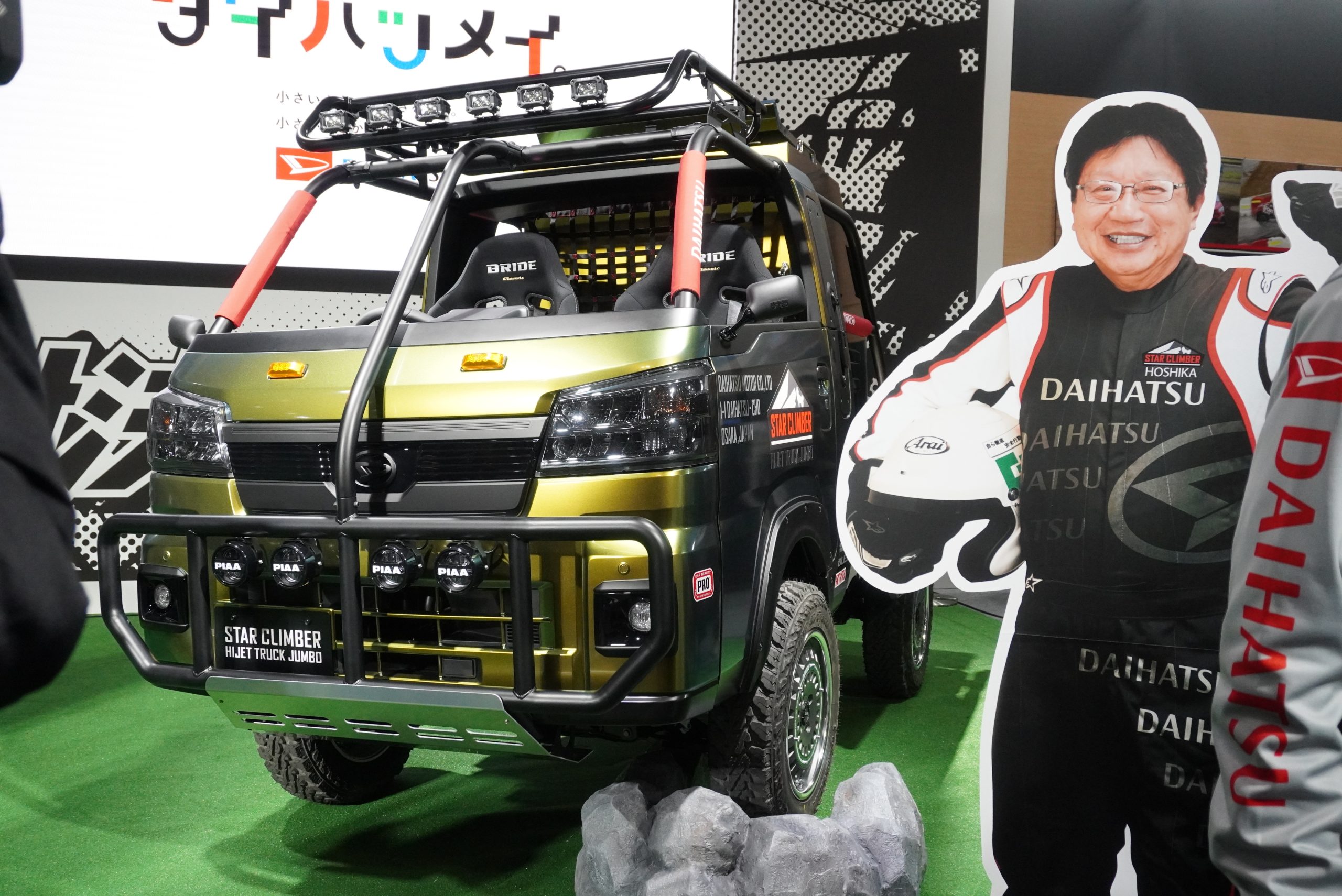 ダイハツとの親子対決では、軽トラのカスタムカーが登場。GRとダイハツが、それぞれ本気でカスタムしたハイゼットは必見です。ダイハツブース内の展示スペースでは、どちらがいいかの投票を実施しています。ひとり1回までですが、お好きなカスタムトラックに投票してみてはいかがでしょう。
