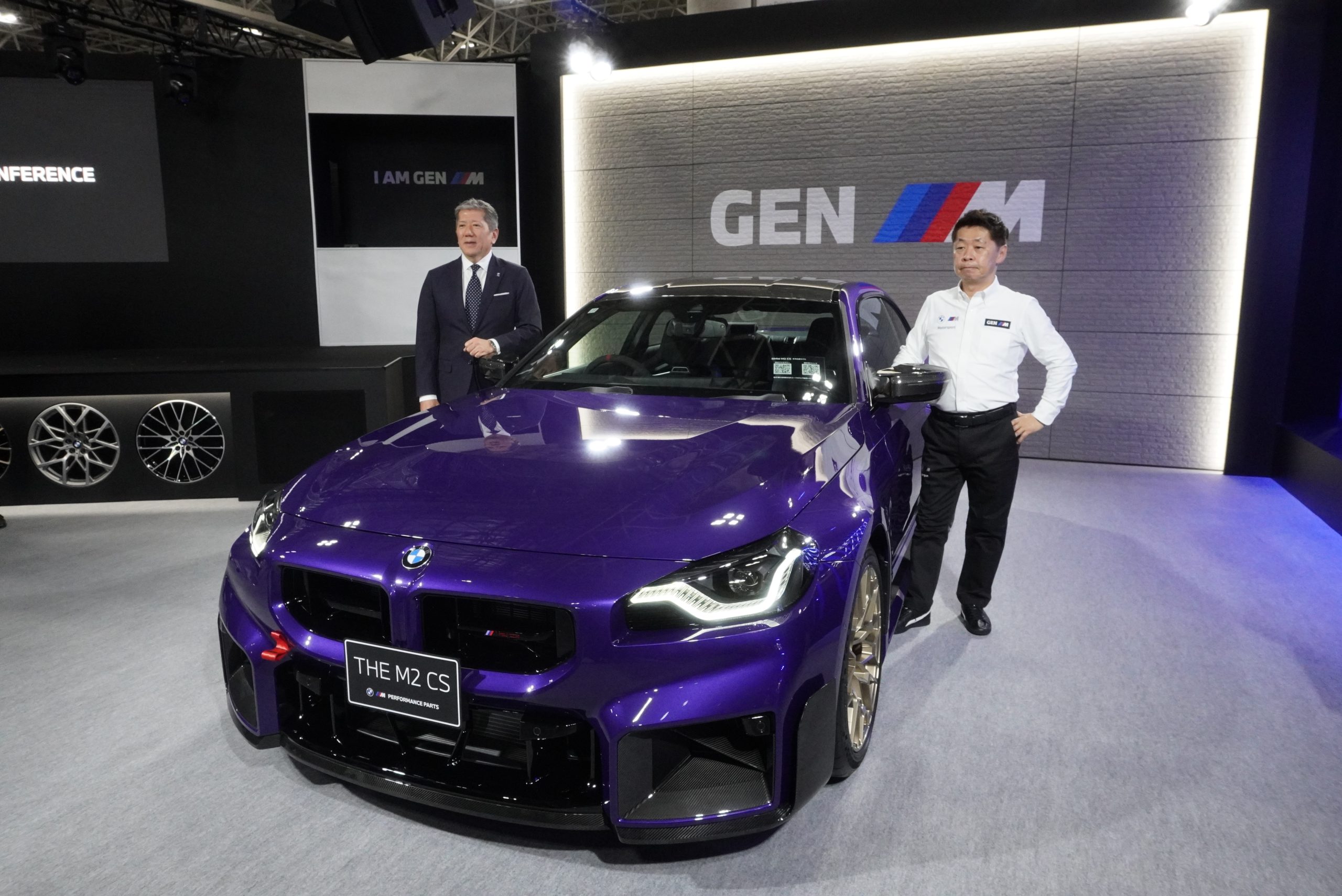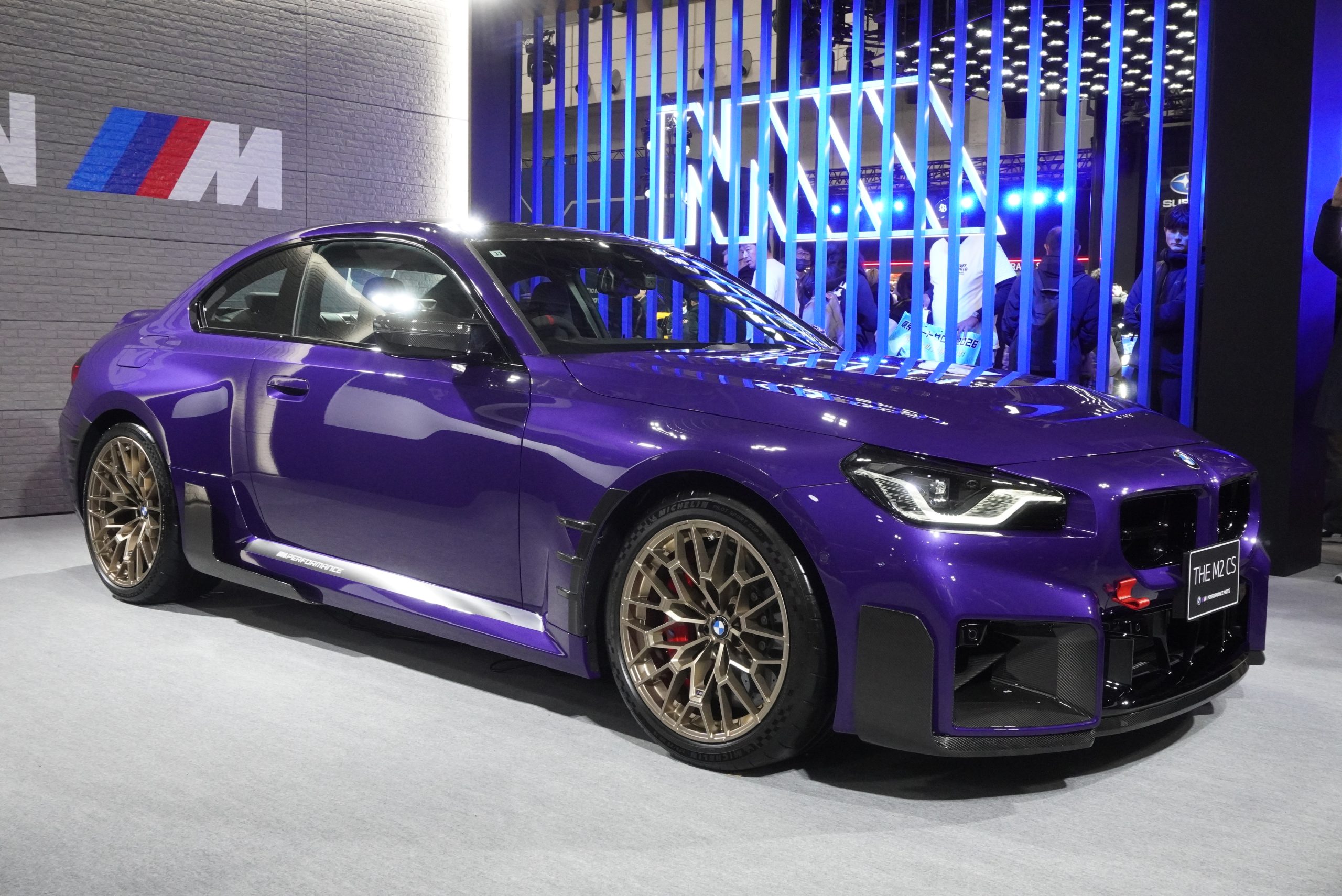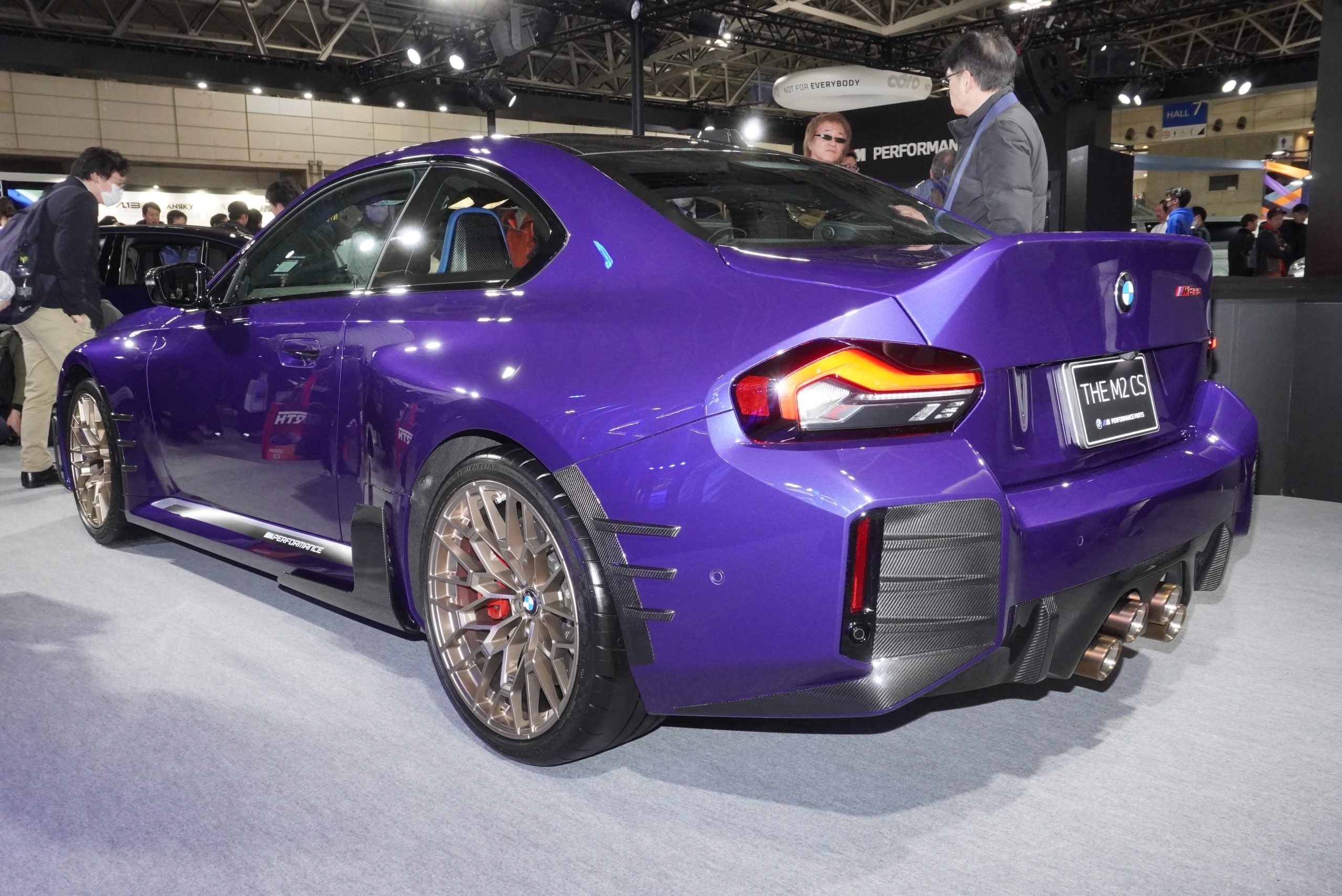 BMWでは、例年通りハイパフォーマンスブランド「M」のモデルが展示されています。なかでも注目は、日本初のお披露目となった「M2 CS」のMパーツコンプリートモデル。全国87台の限定モデルで、ノーマルからさらに過激なエアロパーツや、性能アップのための装備がほぼすべて入っているモデルです。