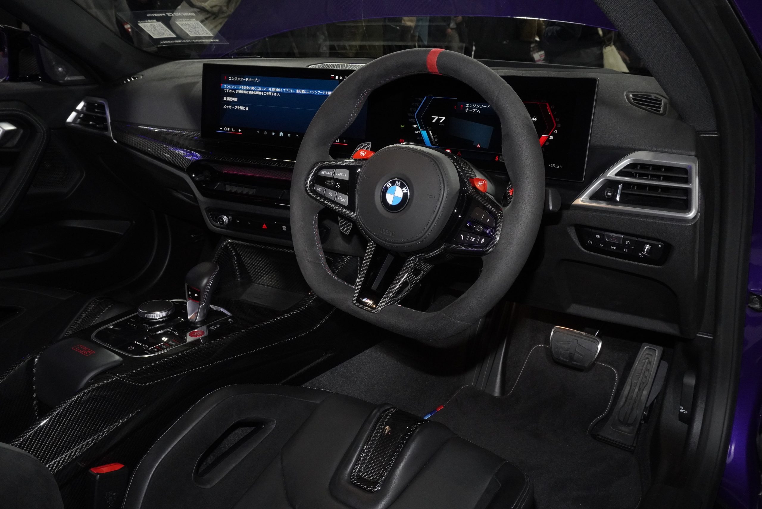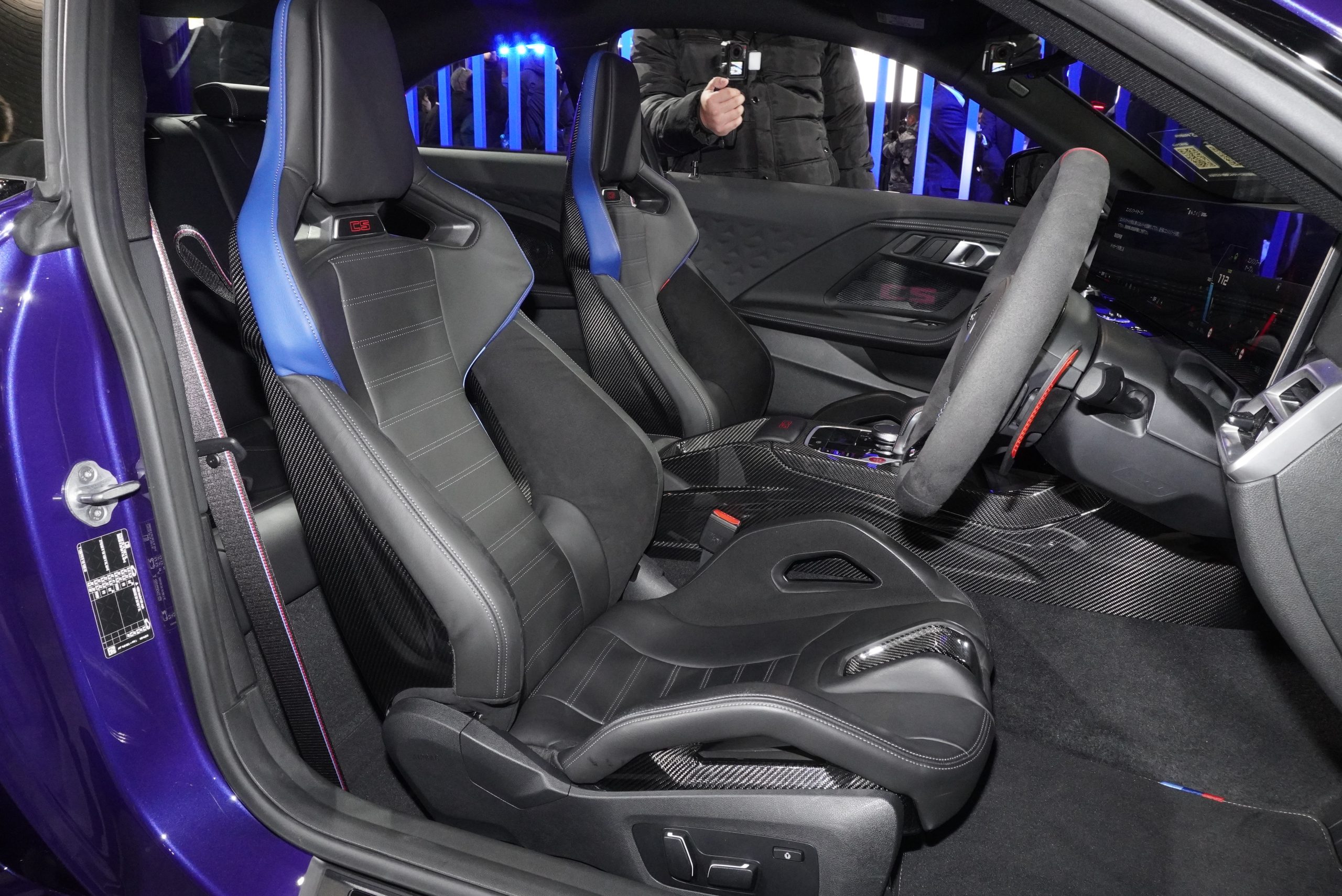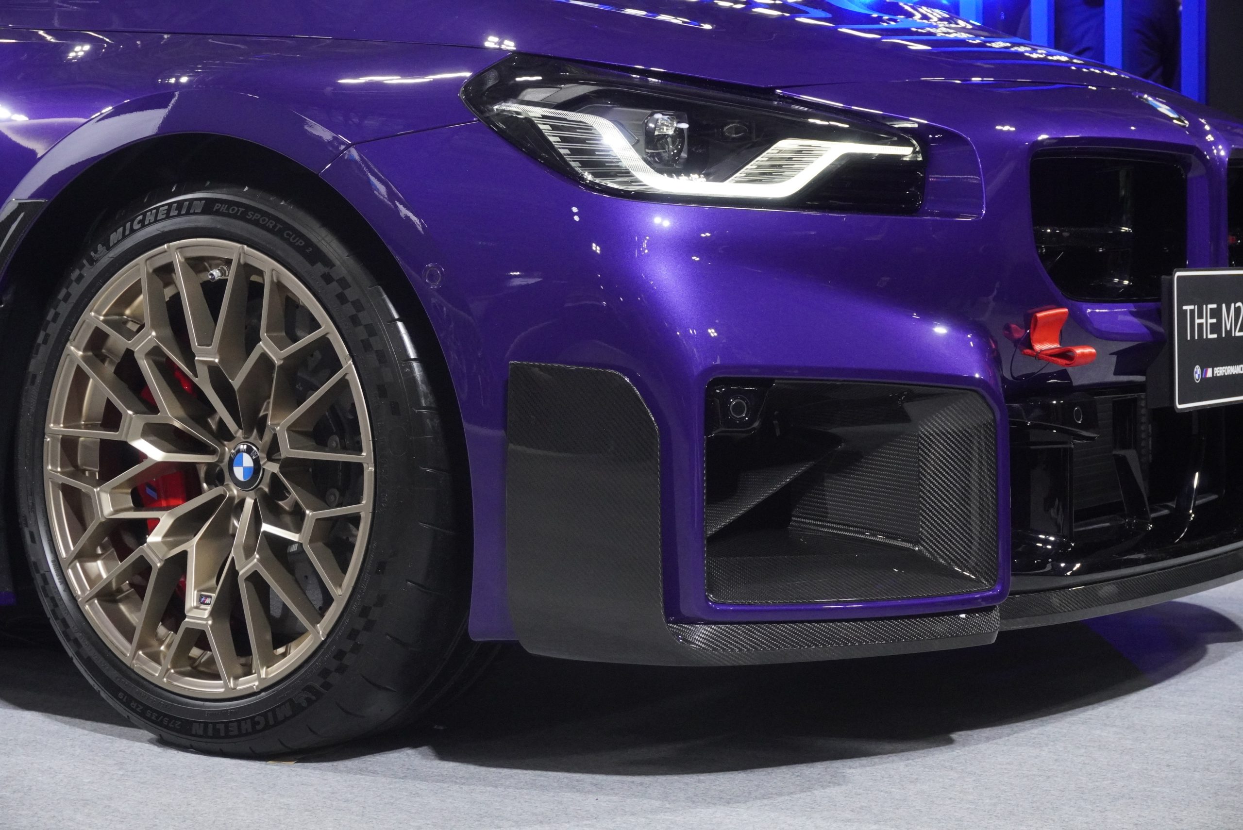 BMWでは、例年通りハイパフォーマンスブランド「M」のモデルが展示されています。なかでも注目は、日本初のお披露目となった「M2 CS」のMパーツコンプリートモデル。全国87台の限定モデルで、ノーマルからさらに過激なエアロパーツや、性能アップのための装備がほぼすべて入っているモデルです。