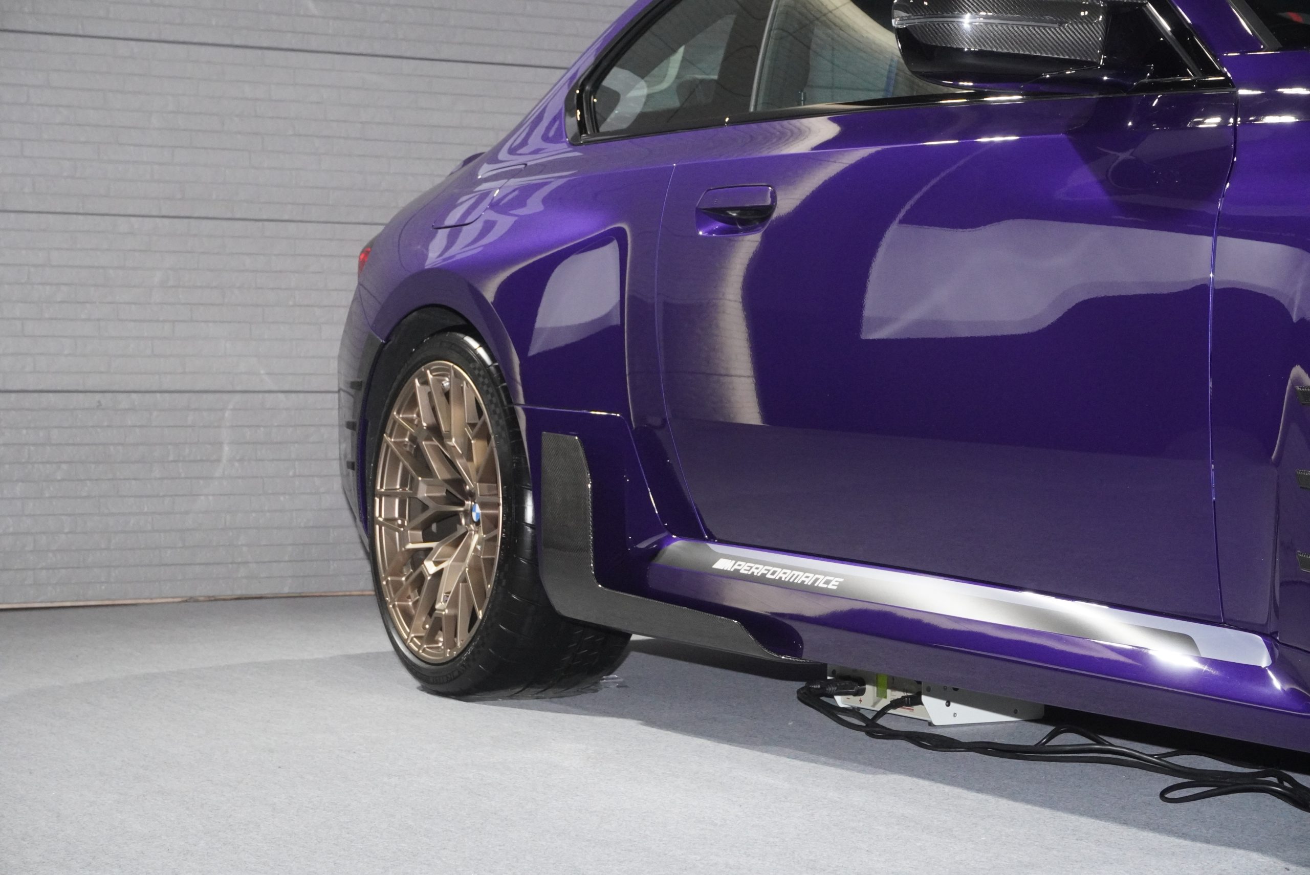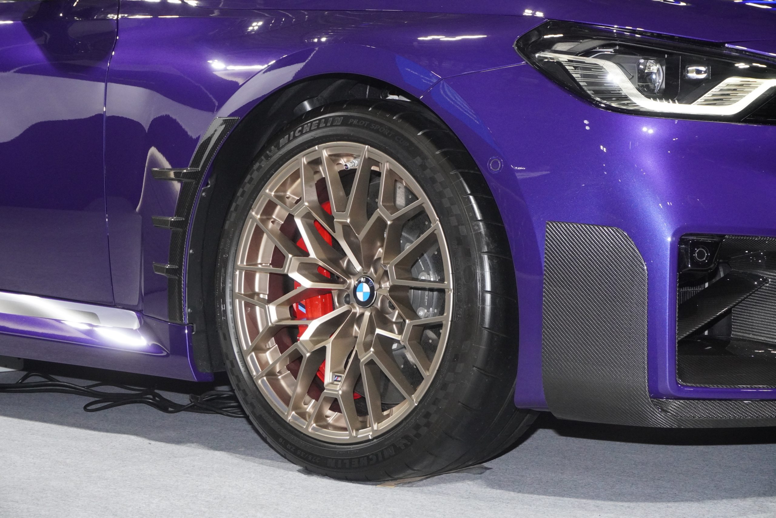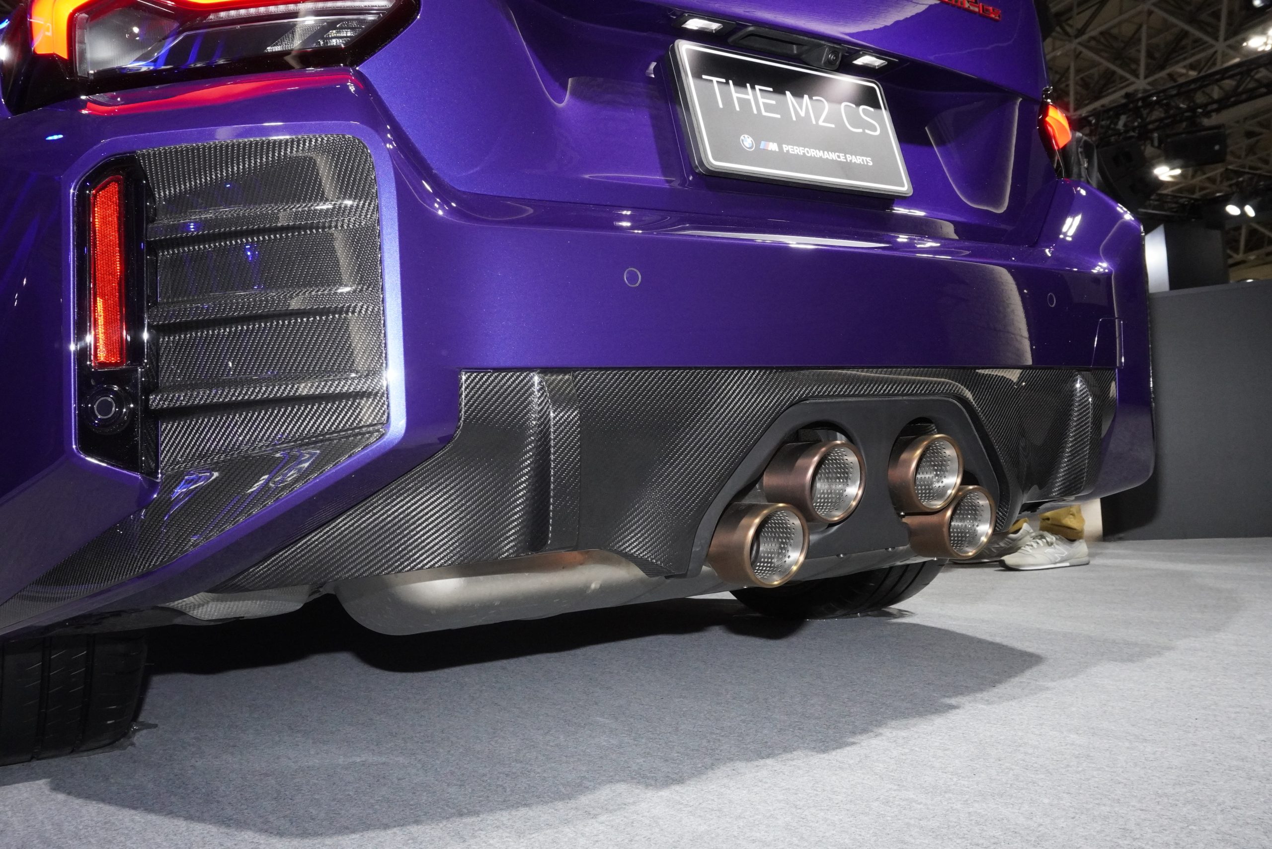 フロントのリップスポイラーやカナードなども目立ちますが、どちらかといえばリアの方がノーマルとの変化が気づきやすいでしょう。カーボンのエアロに囲まれ、センターに4本まとめられたマフラーは、M3にも採用されていたデザインで、ひと目で特別なMモデルだと気づかせてくれます。