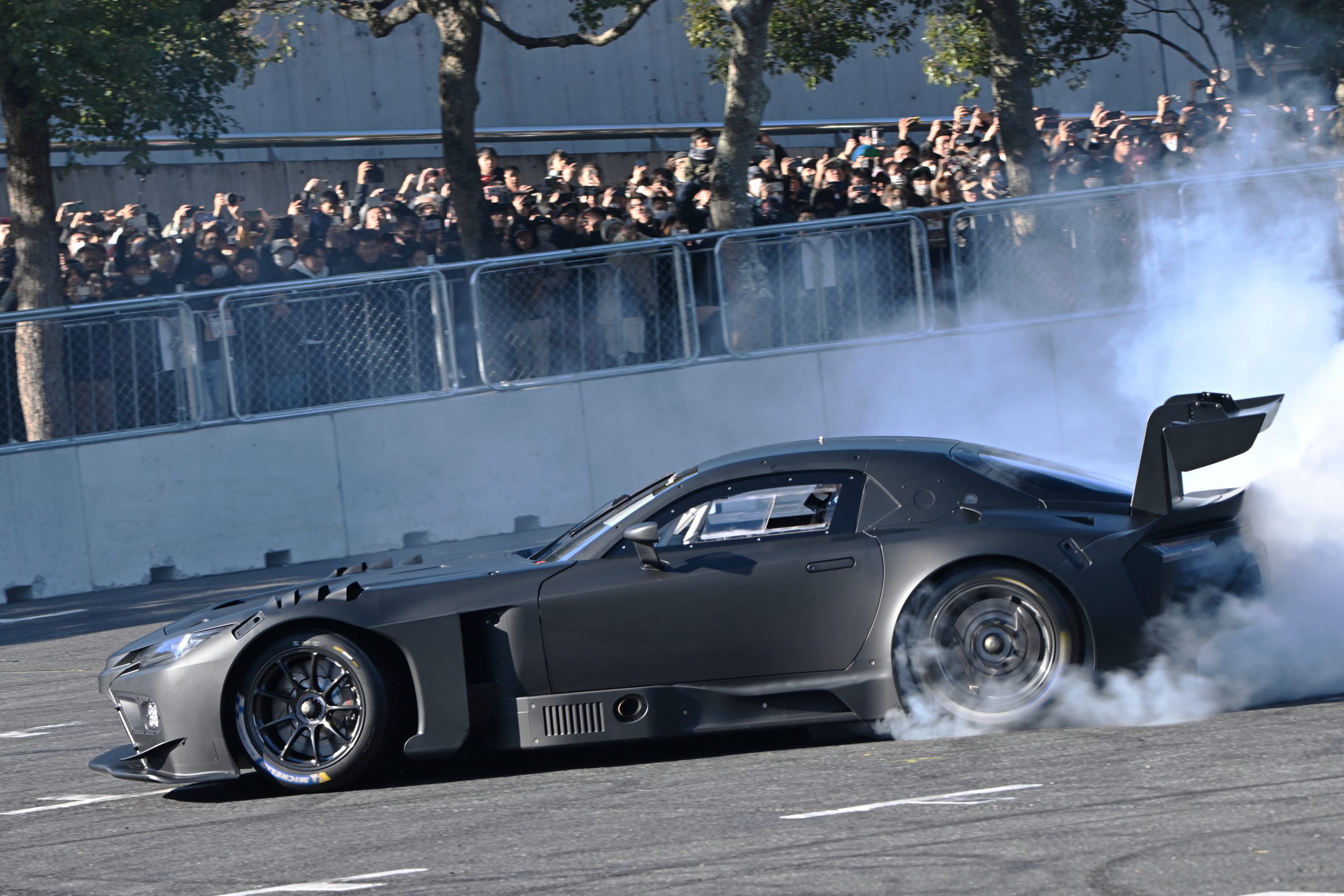 昨年末に発表されたGR GTとGR GT3の2台が走行をするこの機会ですが、世界初公開のデモンストレーション走行となります。屋外イベント会場だけでなく、前回のオートサロンで好評であった会場南側の通路も使用しての走行となりました。
