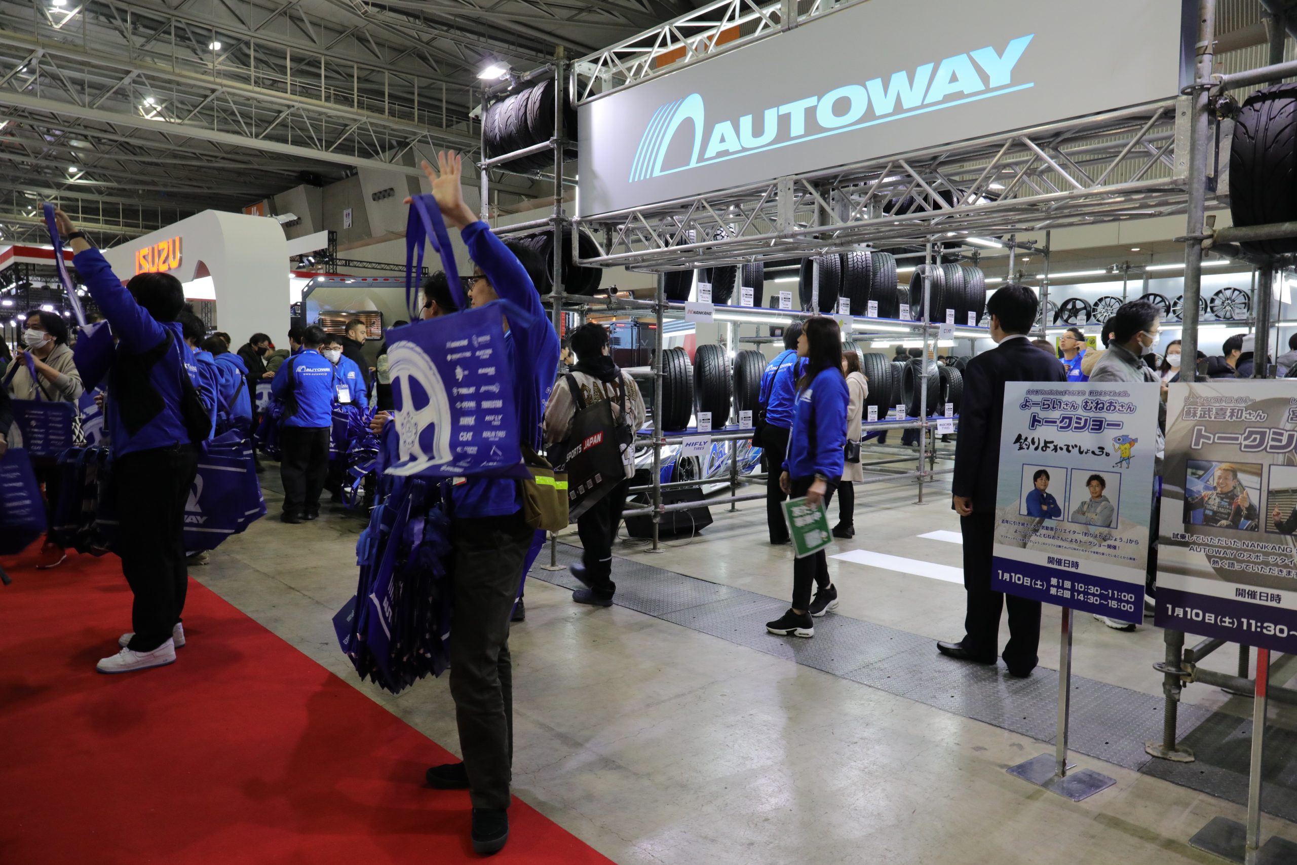リーズナブルな輸入タイヤやホイールをインターネットで販売する会社、AUTOWAYは北ホール11にブースを構えています。