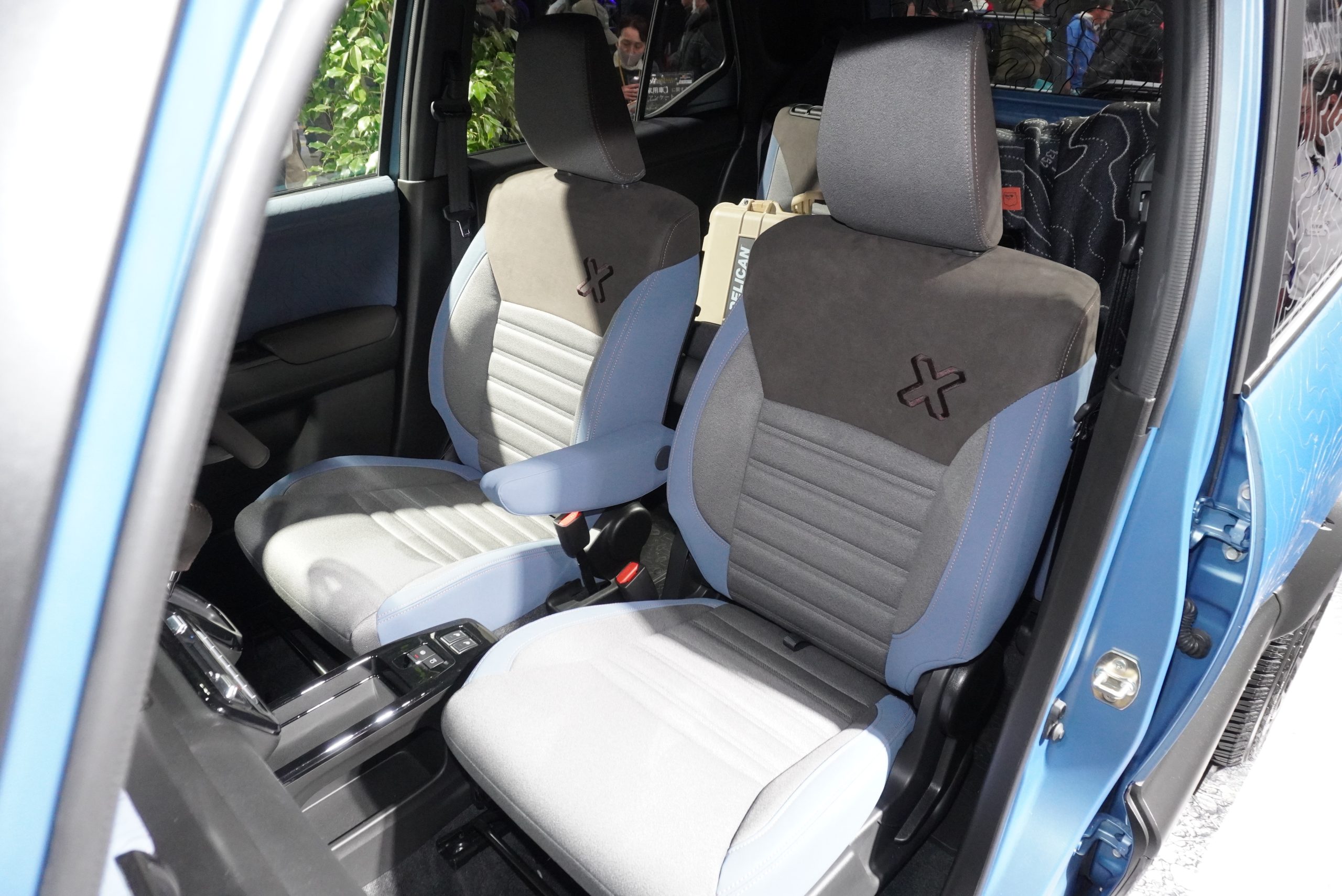 今回の4台のなかでは唯一内装にまで手が加えられたクロスビー。ダッシュボードやシートまで専用の生地や模様で仕上げられています。エクステリアにも描かれた等高線をイメージしたラインは、インテリアにも生かされ、特別感を演出。こちらもアクティブなフォトグラファーにぴったりなイメージで仕上がっています。