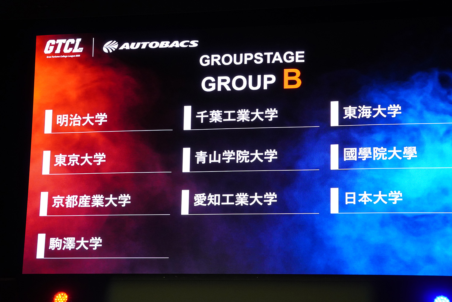全国から幕張メッセに集った大学の数は20。この中から大学ナンバーワンのチームが決まる。使用されたタイトルは,お馴染みプレイステーション5用ソフトの「グランツーリスモ7」。観戦客のボルテージが最高潮となった13時過ぎ、決勝進出をかけたグループステージレースがスタートした。
