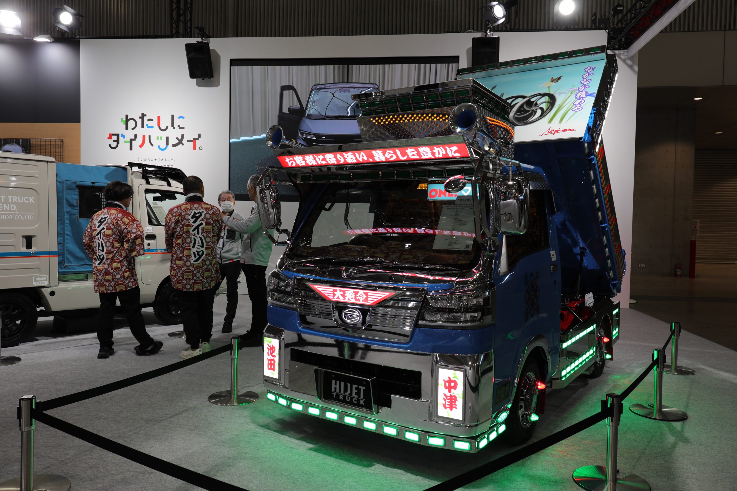 カスタマイズカーとして展示されている6台の車輛は、すでに公表されている車輛のため、ご存知の方も多いでしょう。「ハイゼット トラック PTO ダンプ 大発命」、「ハイゼット トラック パネルバンEXTEND 3」、「ムーヴ クロメキ」、「ムーヴ #ootd(オーオーティーディー)」、「タント カスタム クロメキ」。そして、軽トラ対決のためにプロデュースした「ハイゼット トラック ジャンボ スタークライマー」と同社を代表する軽自動車をベースに、様々なカテゴリーを視野に入れたカスタム車輛も展示中。皆さんのドレスアップの参考にも役立つことは間違いないでしょう。