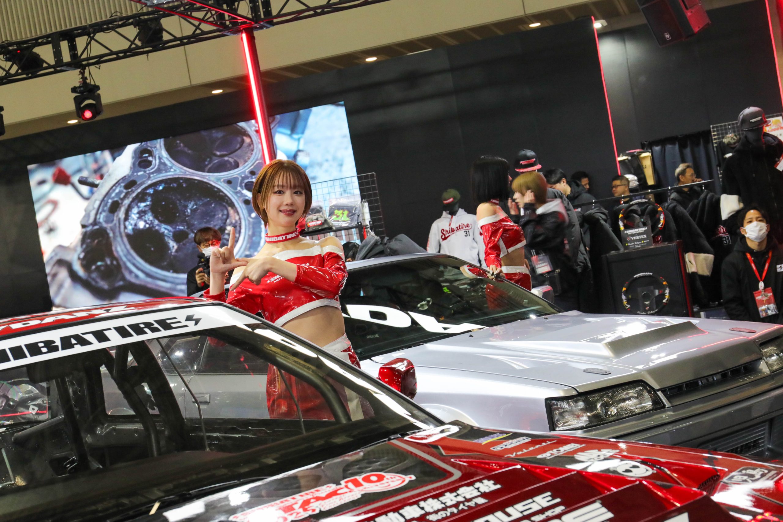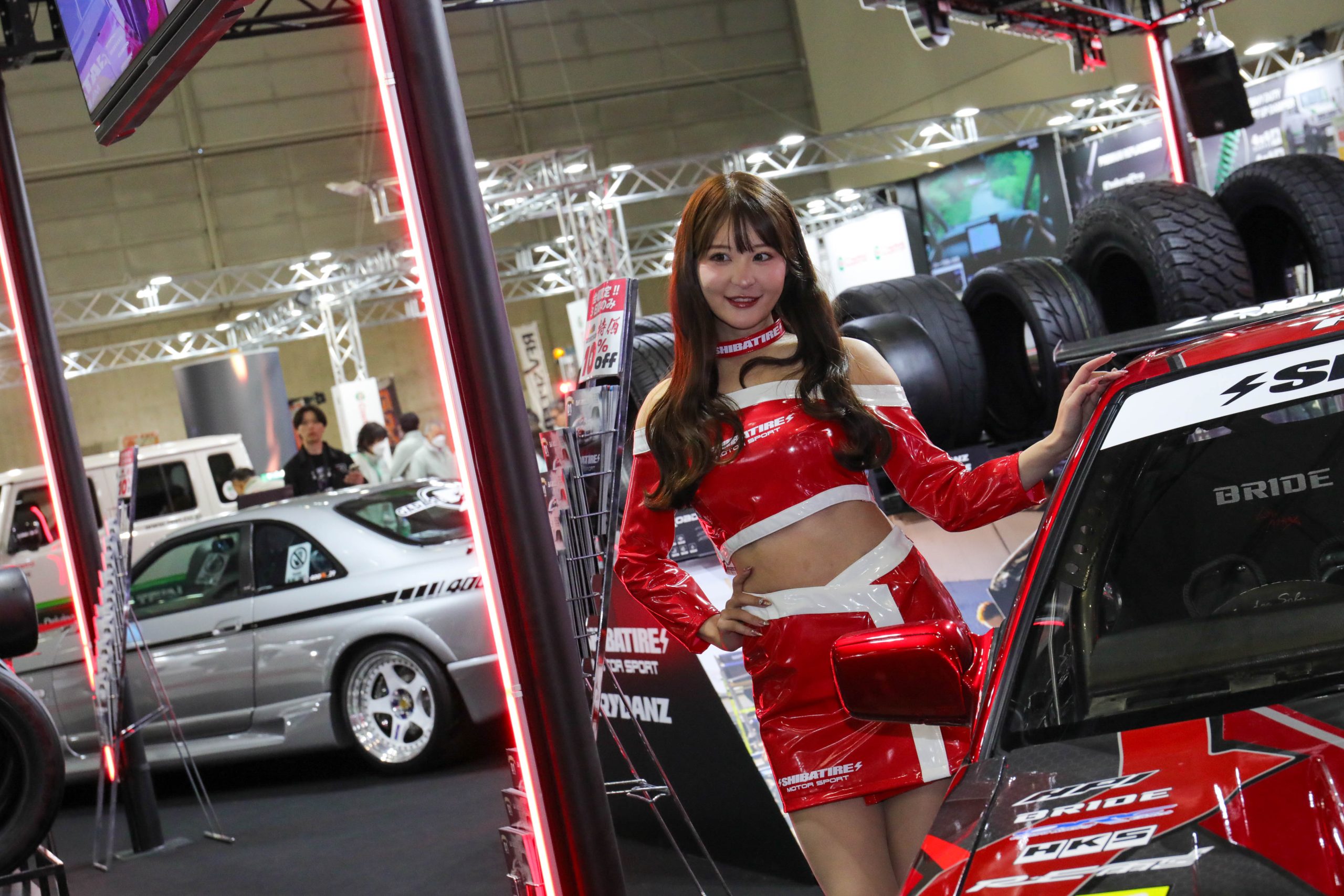 そして、シバタイヤと言えば、D1 GPなどでもお馴染みのレースアンバサダーの皆さんが、今年もブースに華を添えています。10日(土)の9時15分から始まった撮影会は大盛況。今年はレースアンバサダー撮影会以外にも、彼女たちのステージショー。蕎麦切広大選手サイン会、田村宏志氏&松田次生氏トークショー、Doul・SO-SOスペシャルライブなどもブースにて開催予定です。