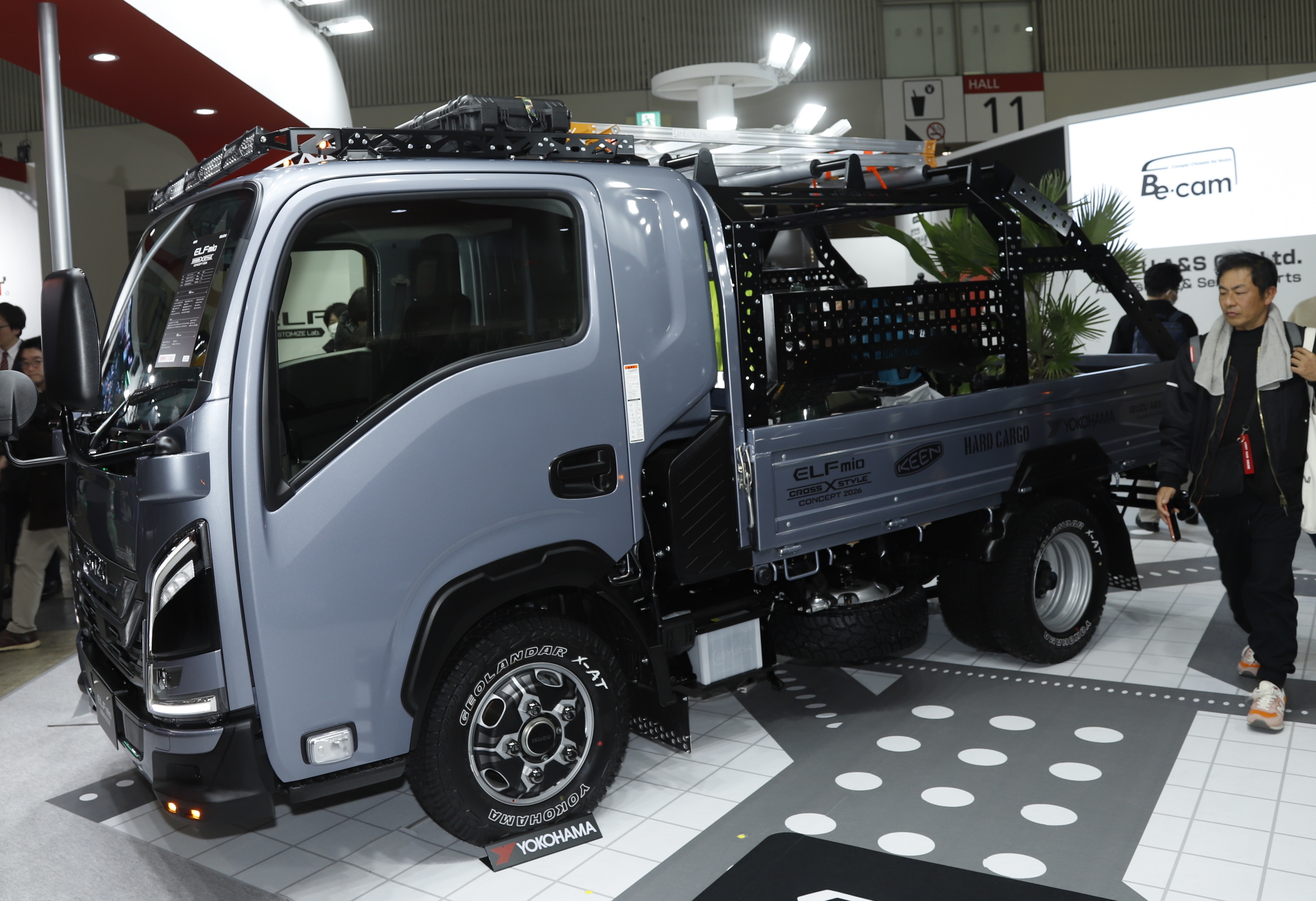 今回の『東京オートサロン2026』には、「ELF CUSTOMIZE Lab.(エルフ カスタマイズ ラボ) 走りだせ、冒険仕様」をテーマにしたブースを出展しました。小型トラックの「エルフ」と、AT限定の普通免許でも運転できる「エルフミオ」のカスタマイズ車両と、エルフをベースとしたキャンピングカー専用シャシー「Be-cam」の新しいフラッグシップモデル1台を展示しています。