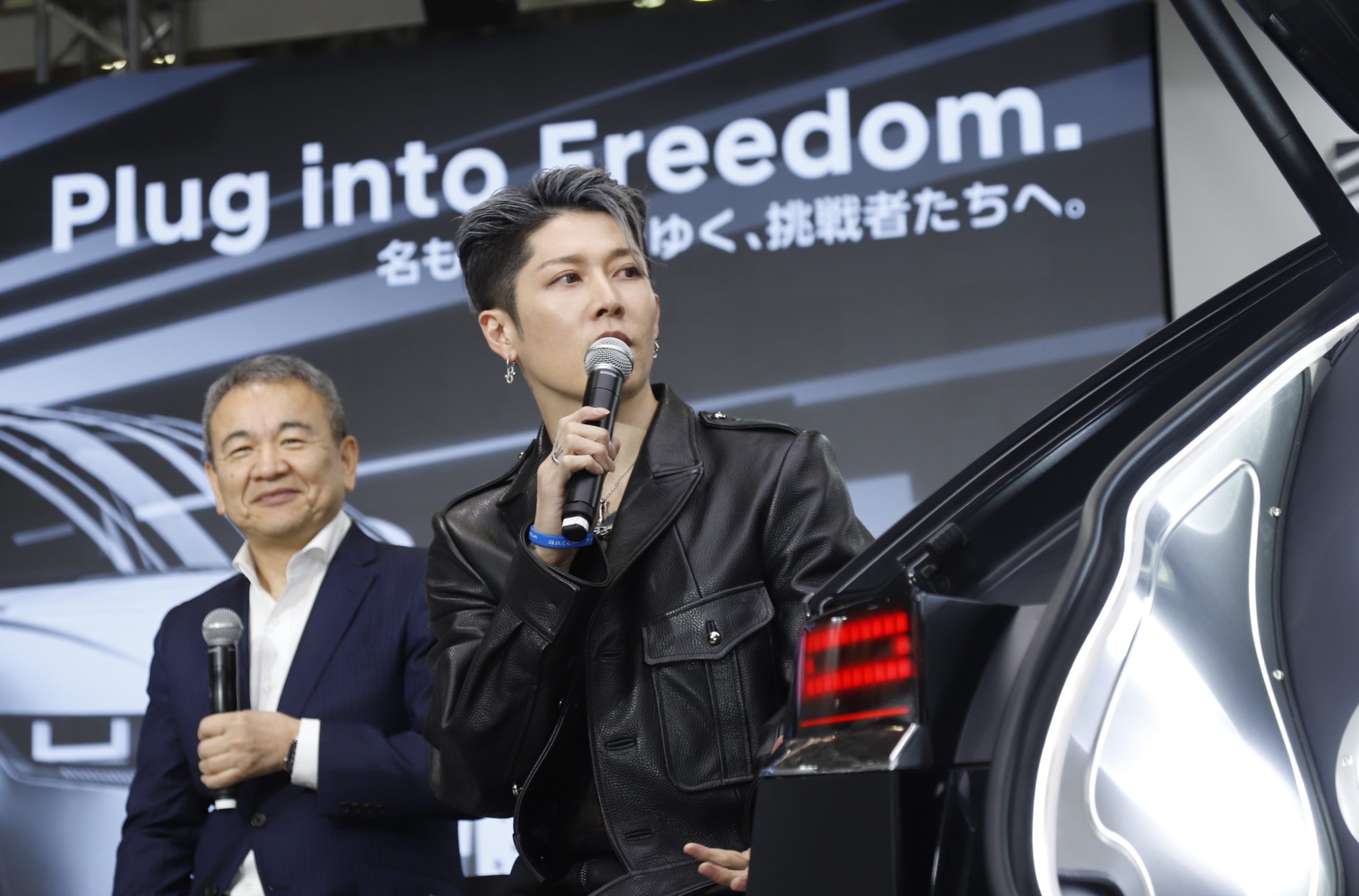 プレスカンファレンスでは、最初にヒョンデ・モビリティ・ジャパンの七五三木 敏幸 社長が登場。クルマは単なる移動手段という常識に捉われず、新しいライフスタイルを提案するヒョンデと、「既存の枠に留まることなく挑戦を続ける」姿勢で世界中を移動しながら表現を続けるギタリスト、MIYAVI氏のコラボレーションが実現。スペシャルゲストとしてステージに登壇すると、会場は大きな盛り上がりを見せました。