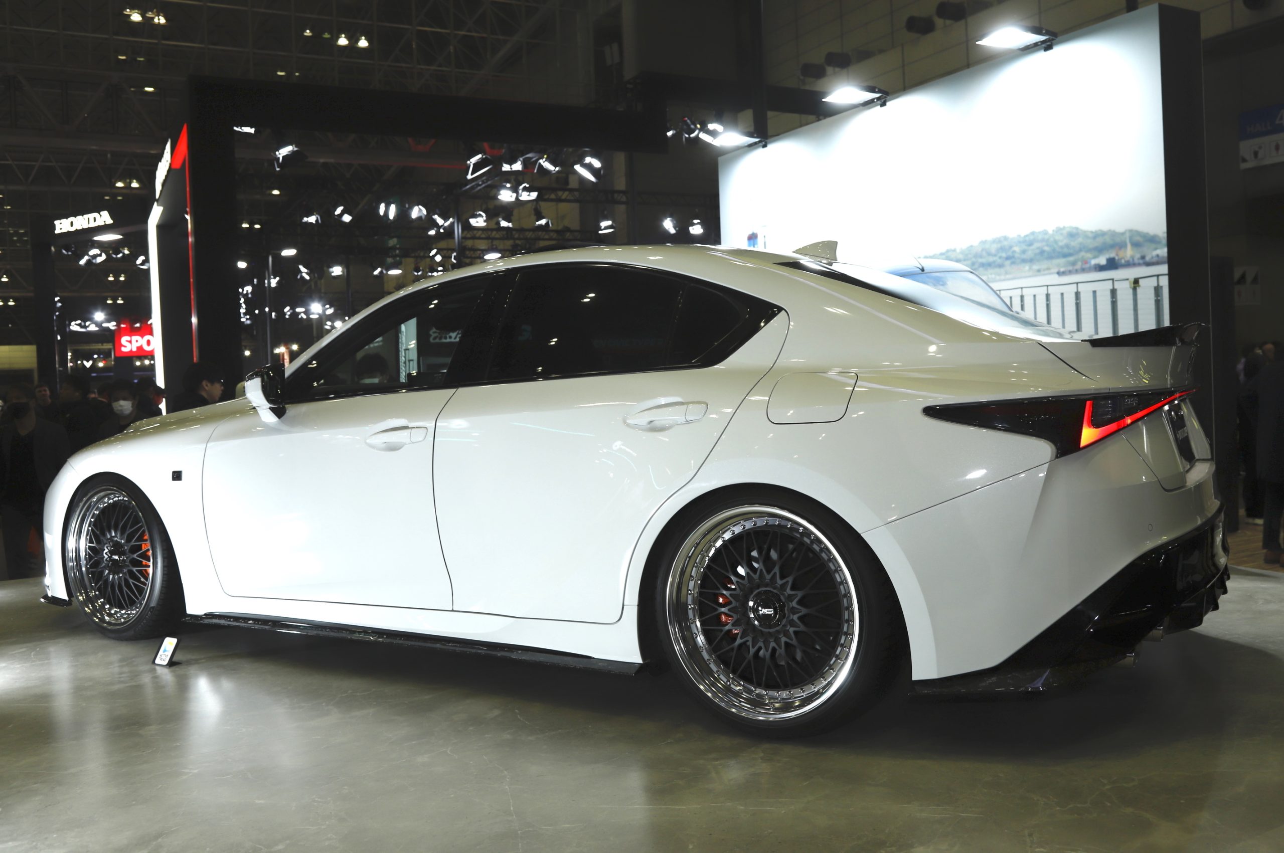 ブースの入り口近くに展示されたのは、レクサスのスポーツセダン「IS500」です。こちらは前後とも245/35R20サイズのシンクロウェザーを装着していました。