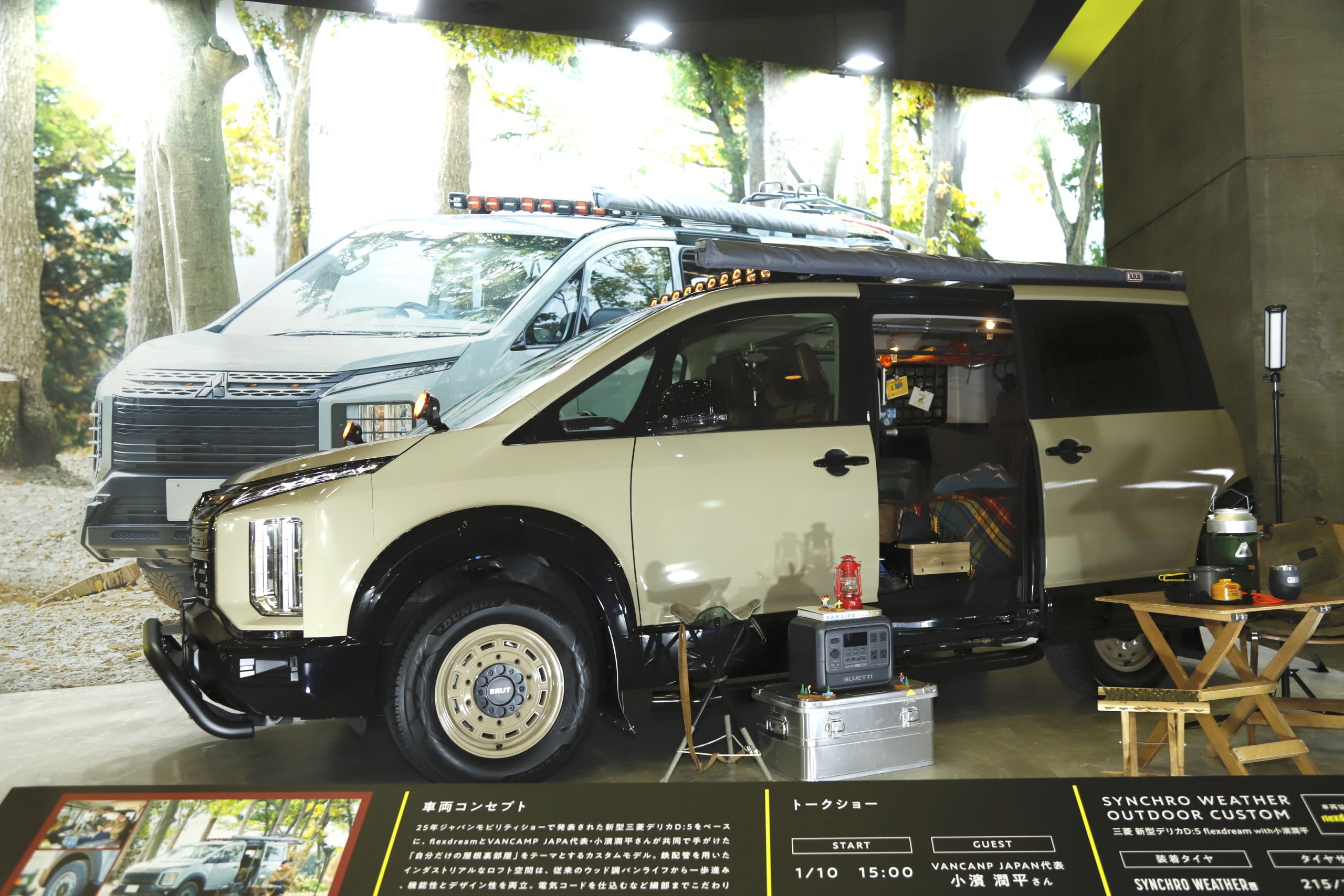 そしてもう1台が、アウトドア仕様にカスタムされた三菱・デリカD:5です。車両はリフトアップされ、215/70R16サイズのシンクロウェザーを装着。このように3台の展示車両は、いずれも年代が異なりそれぞれのテイストでモディファイされていますが、それだけシンクロウェザーがどんなクルマにも対応できるフトコロの深さを感じさせる内容となっています。