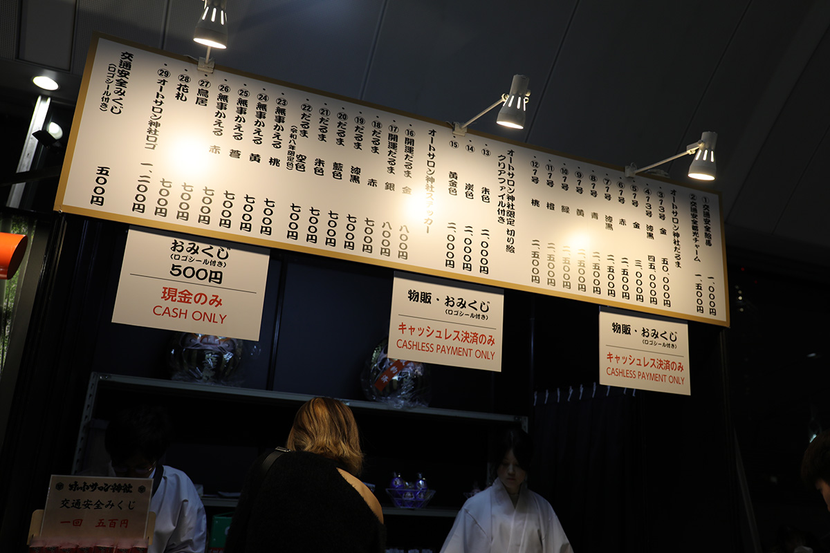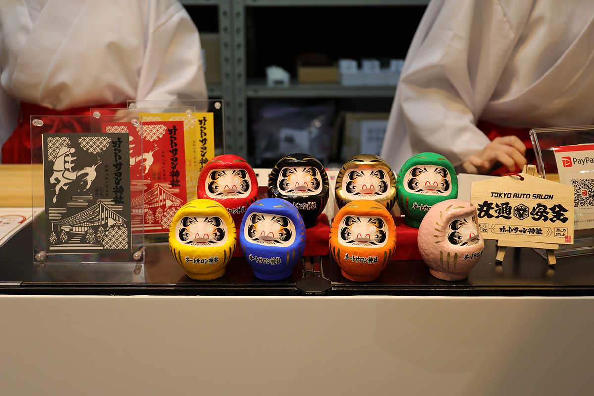 このコンテンツには、幕張メッセに近い千葉市花見川区にある「検見川神社(けみがわじんじゃ)」にご協力をいただき、実際に来場者の皆様の交通安全や愛車との日々の充実を代表祈願しています。当日、この「オートサロン神社」での祈祷受付などは実施していませんが、皆様の交通安全祈願はもちろん、この神社に因んだ縁起物や交通安全を祈願するステッカー、おみくじなど、会場でしか手に入れることができない限定商品も販売中です。