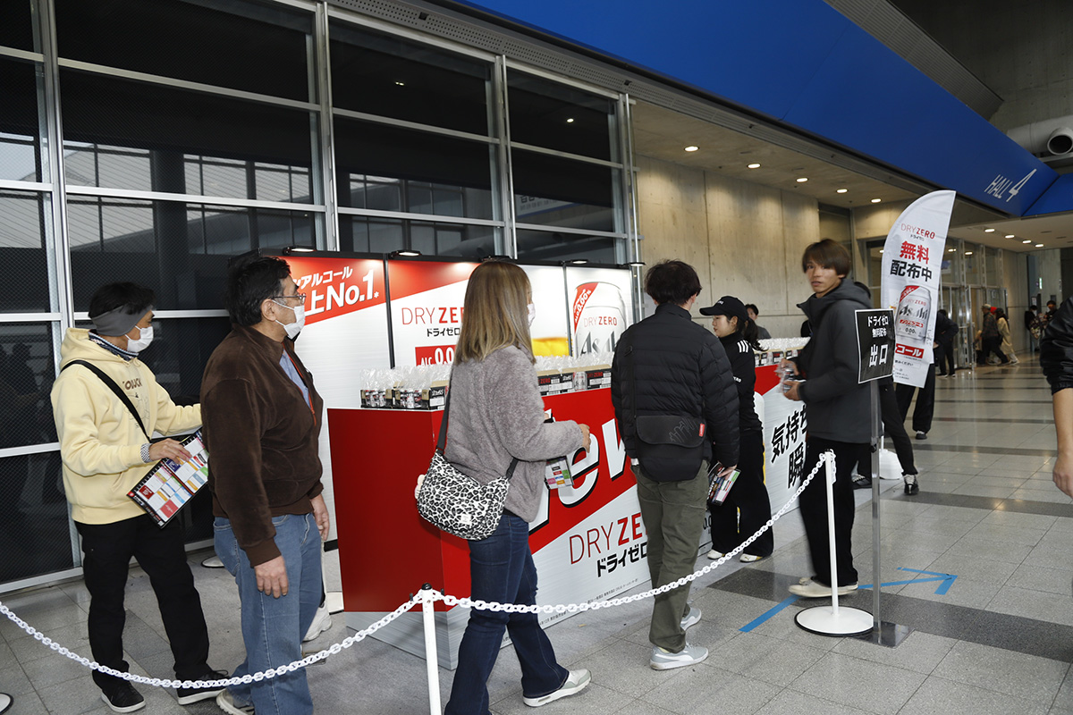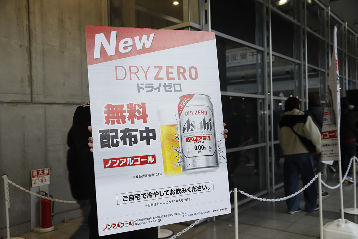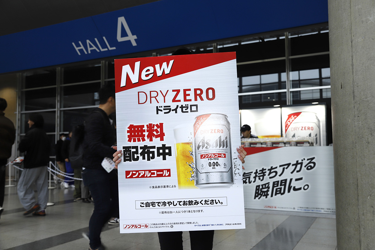 今年も大盛り上がりとなっている「東京オートサロン2026」。その各ホールにアクセスできるメイン通路では、なんとアサヒ『ドライゼロ』の無料配布が行われている。