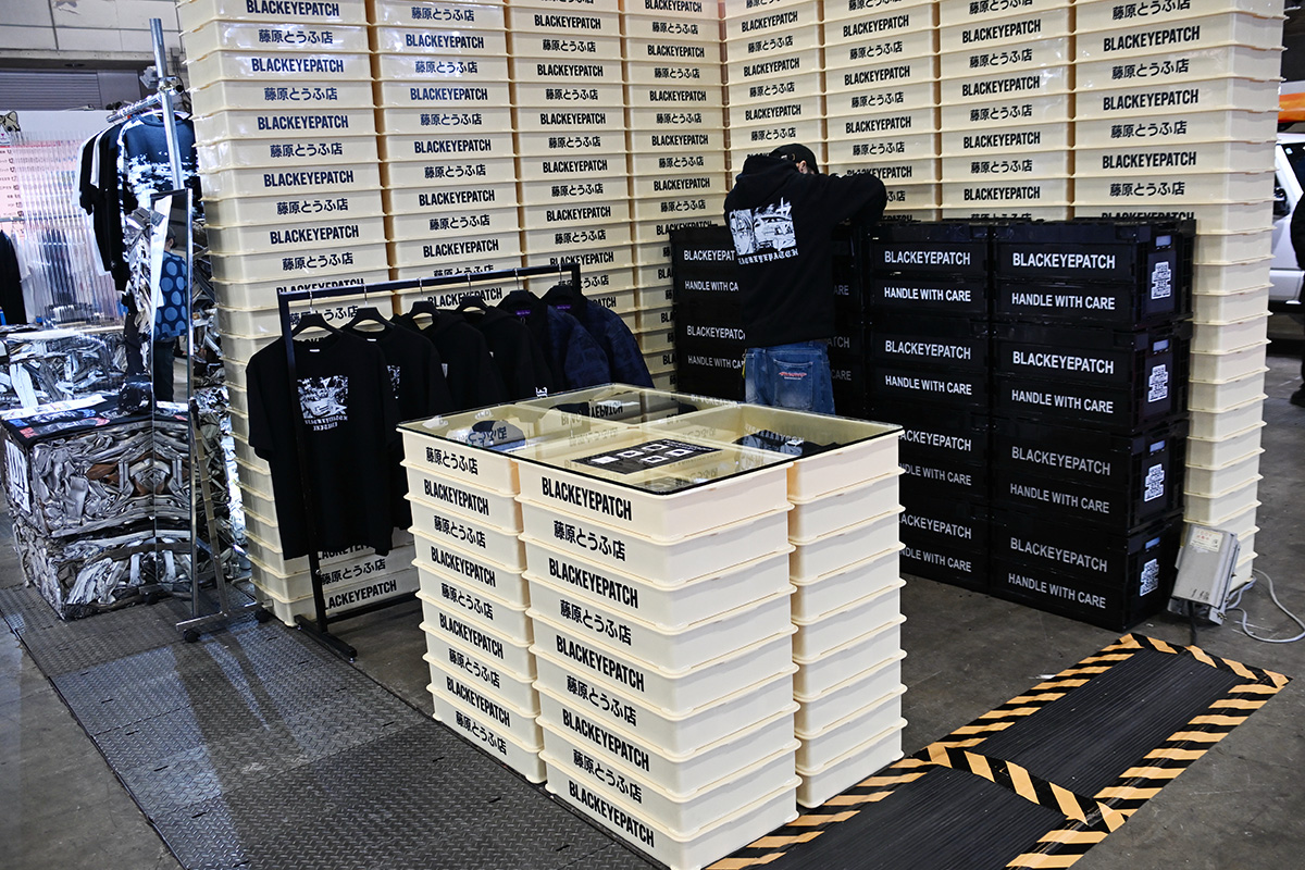 JDMtours × TAS POP UP STOREが中6ホールに出展中です。これは、日本のカルチャーに強い思い入れを持つメンバーによるメディア兼プロダクトブランド「JDMtours(ジェーディーエムツアーズ)」と「BlackEyePatch(ブラックアイパッチ)」、そして「SWJP(エスダブリュージェーピー)」の3ブランドが東京オートサロンとコラボレーションしたもので、ポップアップストアという形で実現し、限定アイテムをこの場で発表し、販売を行っています。