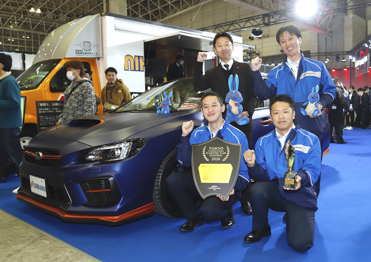 東京オートサロン2026 の最終日に発表された、「東京国際カスタムカーコンテスト2026」。ドレスアップ・ミニバン/ワゴン部門の最優秀賞に輝いたのは、NATSブースに展示された、千葉スバル株式会社制作による「レヴォーグ VMB STI」でした!