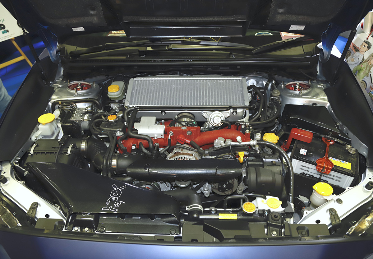 ホイールはPROVA製ラフィナートの18インチで、タイヤはMICHELIN製Pilot sports 5の組み合わせ。サイズは前後とも245/40R18となっています。スバル愛を強く感じさせる「レヴォーグ VMB STI」ですが、なんとエンジンおよびトランスミッション換装は公認取得済みで、ナンバーを掲げて公道を走ることもできるそうです。
