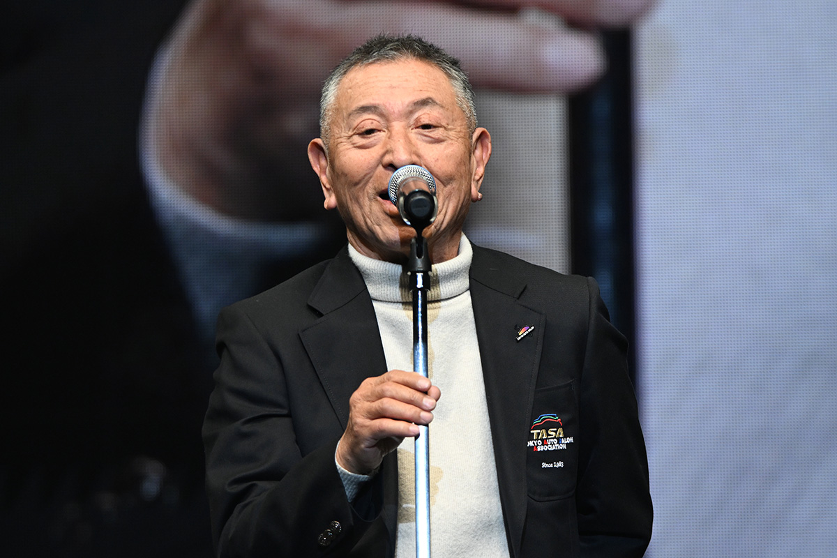 東京オートサロンの前身であるエキサイティングカーショーの発起人である稲田大二郎氏が「皆さん、明けましておめでとうございます。そしておめでとうございます。僕も長い間このカスタムの世界でやってきまして、最近ちょっとそういう面白いクルマっていうか、新車でいろんなものがなかなか出てきませんのでね。皆さん、そのベースカー選びとか、苦労してると思うんです。それでも皆さんどんなふうにやってくるのかなと思って毎年見てるんですけども、相変わらずいろんな新しい技を尽くして作ってきますよね。今、世の中色々ちょっと厳しい状態もありますけれども、このクルマ業界だけはなんか楽しいカスタムとかチューニングして、元気が出るような世界にしていきたいと思っていますから、皆さんも頑張ってください。どうもありがとうございました。」と挨拶し、表彰式を締めくくった。