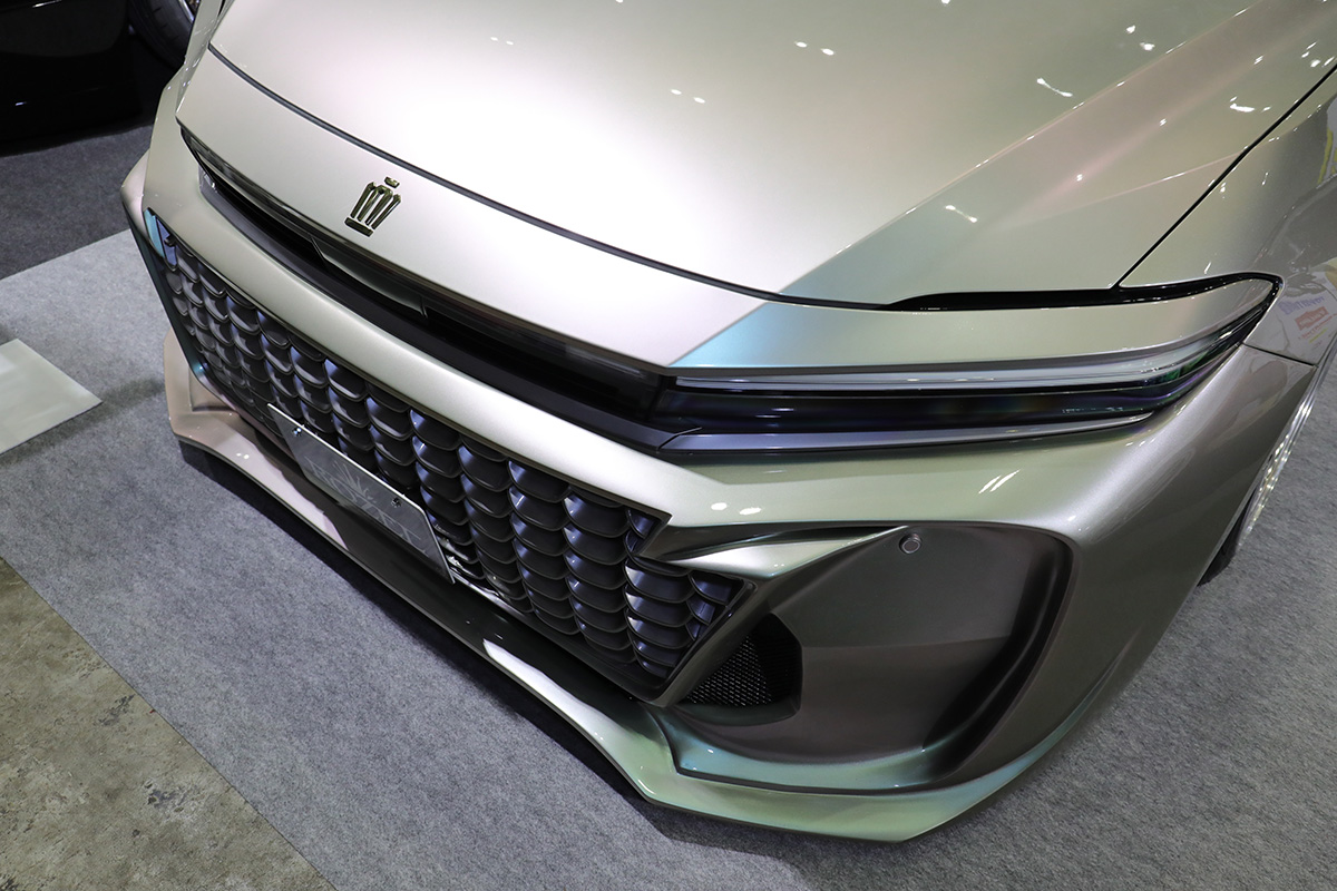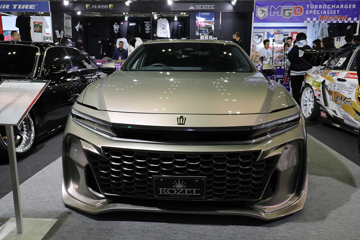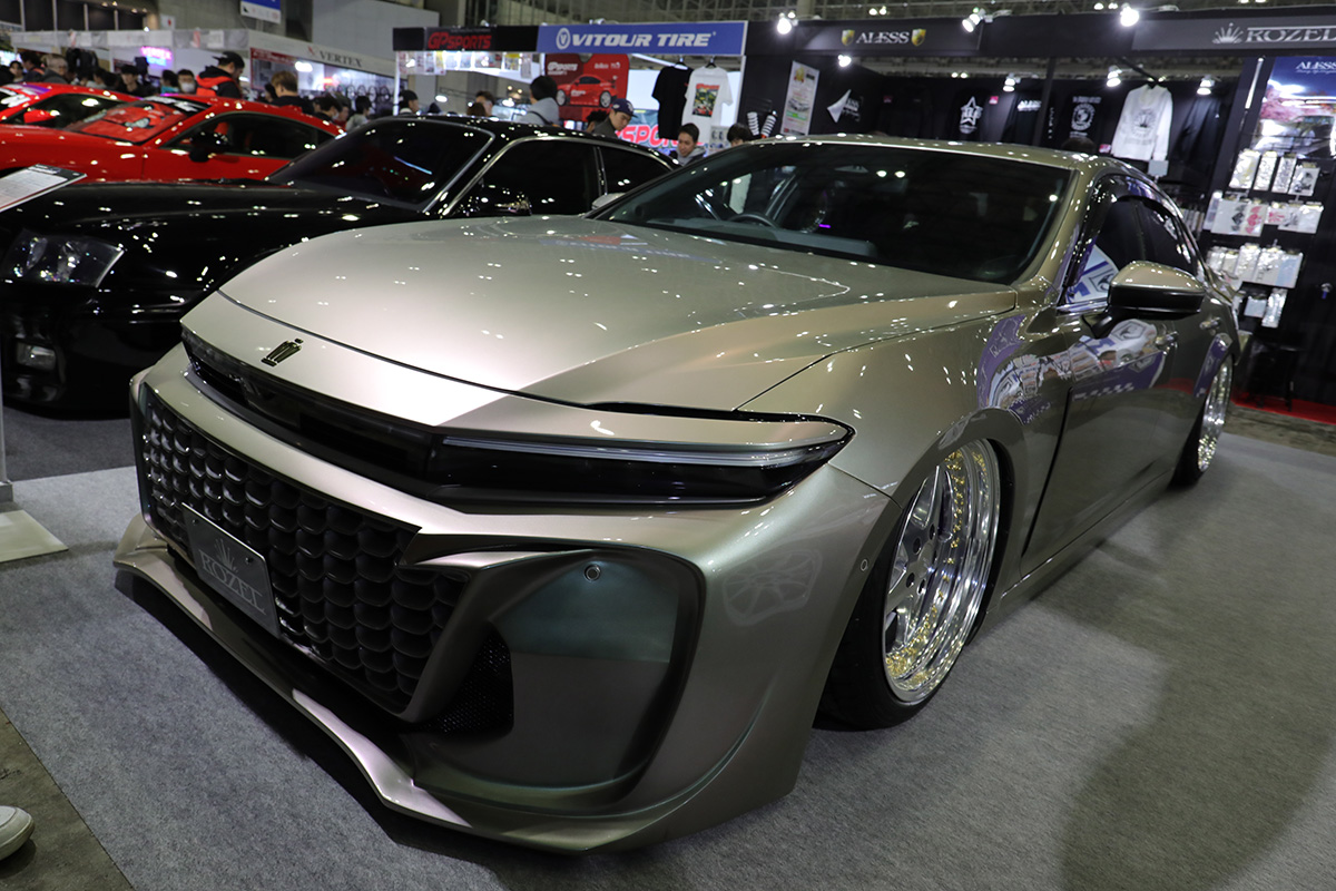 ハニカム形状のフロントグリルや左右のダクトなどが、そのROZELらしさが表現されたポイント。しかし、この最新クラウンと同社のブランドデザインを融合することに苦労したそうです。