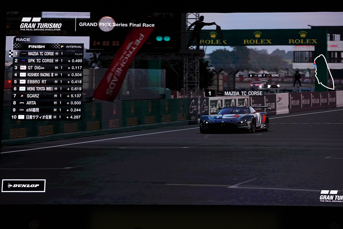 ゴールまでは残り数コーナー。MAZDAはそこから一度も首位を譲らず、見事に最終戦を制しました。2位はSPK、3位には僅差でQT DIG∞が続き、シリーズチャンピオン獲得。見事に4連覇を達成しました。