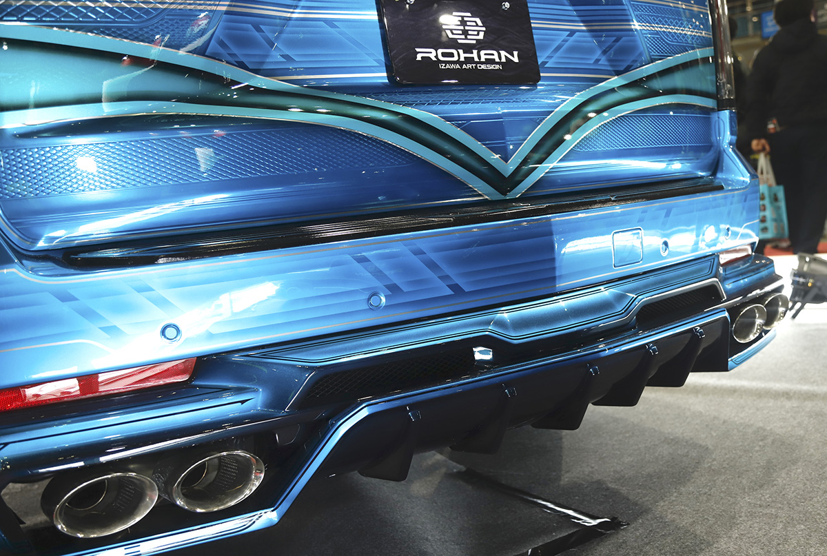 同社代表の上山さんによると、「セダンを専門とするお店として、最新クラウンを手掛けることにこだわりました。しかし、リアがクーペになっているため、それまでのセダンらしさが無いという印象だったのです。そこで、VIPセダンが始まった当時のデザインを意識しながら、弊社らしいスポーティ感とVIP感を組み合わせた独創的なデザインを目指しました」とのこと。