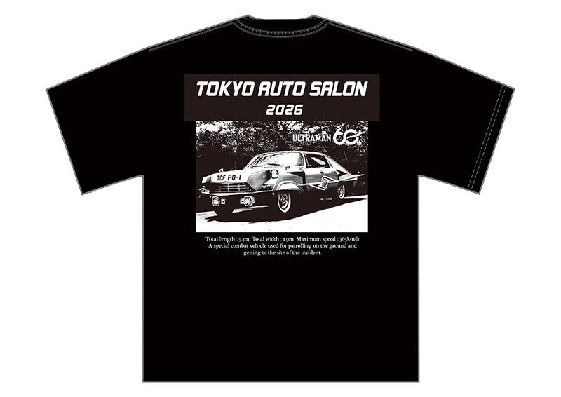 放送から60周年を迎えるウルトラマンの勇姿を描いたTシャツや『ウルトラセブン』に登場したウルトラ警備隊のポインターのTシャツは、東京オートサロンならではの限定コラボTシャツとなっている。