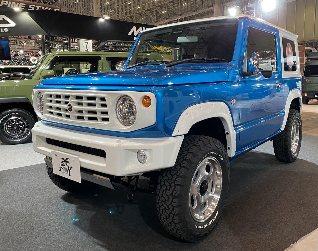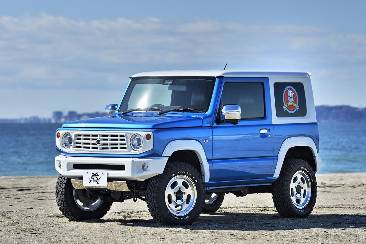 洗練されたクラシカルでオシャレなロザリオエッジが効いたSunny Face Grille。純正の青空のようなブリスクブルーメタリックボディに雲のような真っ白なホワイトを取り入れ、Fun with Jimnyらしいクラシカルでオシャレな一台に。
