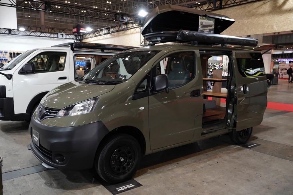ニッサンNV200をベースとした<C-01>の最大の特徴はそのカラーリング。日産の純正工場で塗装されている特別色「OLIVE DRAB」と「COYOTE」の2色からお選びいただけます。ブラックアウトした各所のパーツとの相性も相性も良く、ギア感のある外観が魅力です。