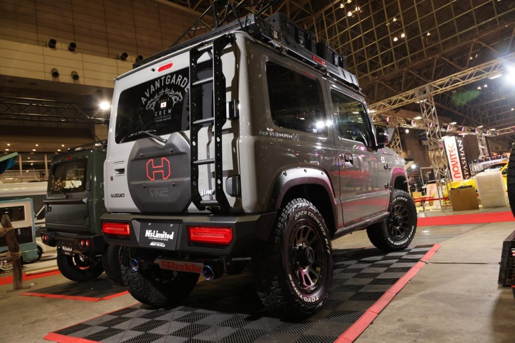 エヌズ・ステージがプロデュース、全国に10店舗展開するジムニーワールドで取り扱うオリジナルカスタムモデル「エヌズリミテッド」が、東京オートサロンの為にさらにモデファイした特別仕様車。このオートサロンでDEBUTとなる軽ジムニー“IRONMAN”HAMER製バンパーを軽自動車規格内に納まるように設計し直し完成したモデルです。