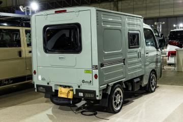 ダイハツ、ハイゼットパネルバンを使用し室内には県産材のフジヒノキと漆喰ペイントを使用した北欧和風テイストの内装に仕上げました。ベットメイクもワンタッチで出来るトランスフォーメションベットを採用し女性でも簡単にベットメイク出来るように致しました。