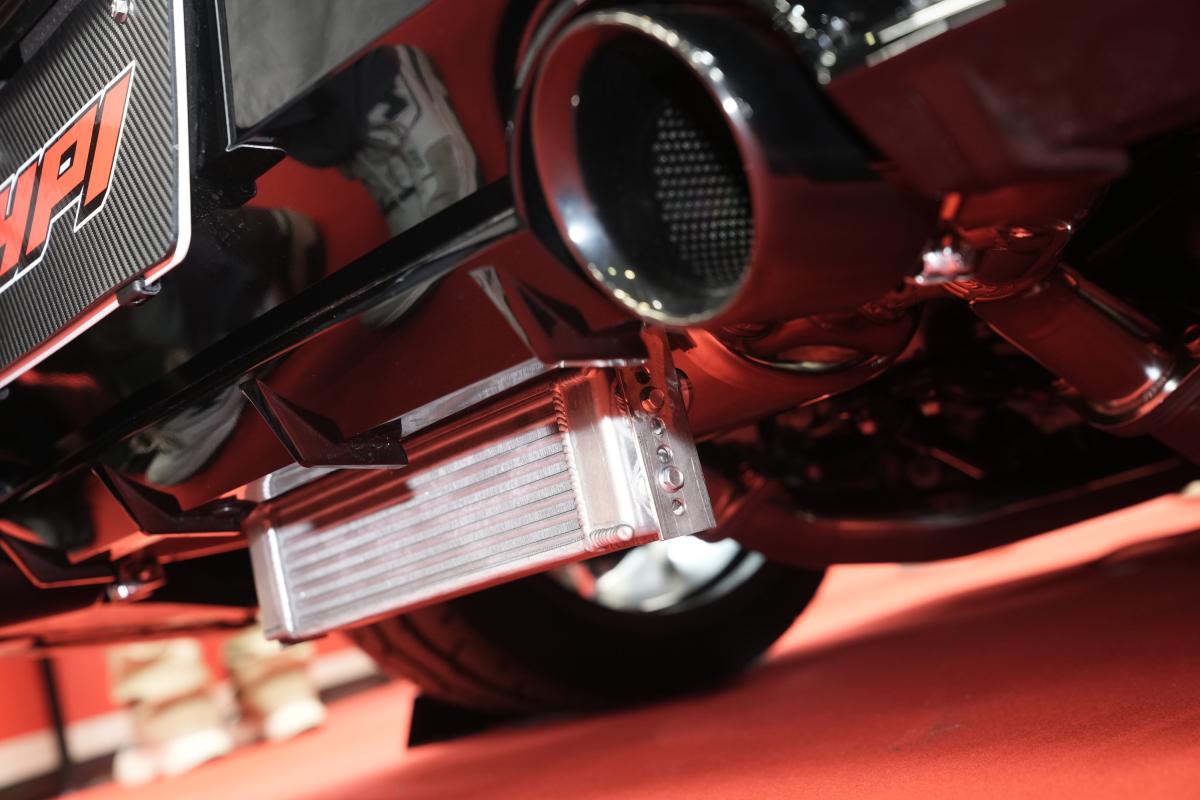 ストリートからサーキットまで、オールステージでの走行を想定し開発した冷却系新商品をはじめ、特許商品のフロアバー、チタニウムタワーバー、トーイングベルトアダプター、ステアリングホイール、レーシングハーネスなど、HPIオリジナル商品を多数装着。