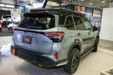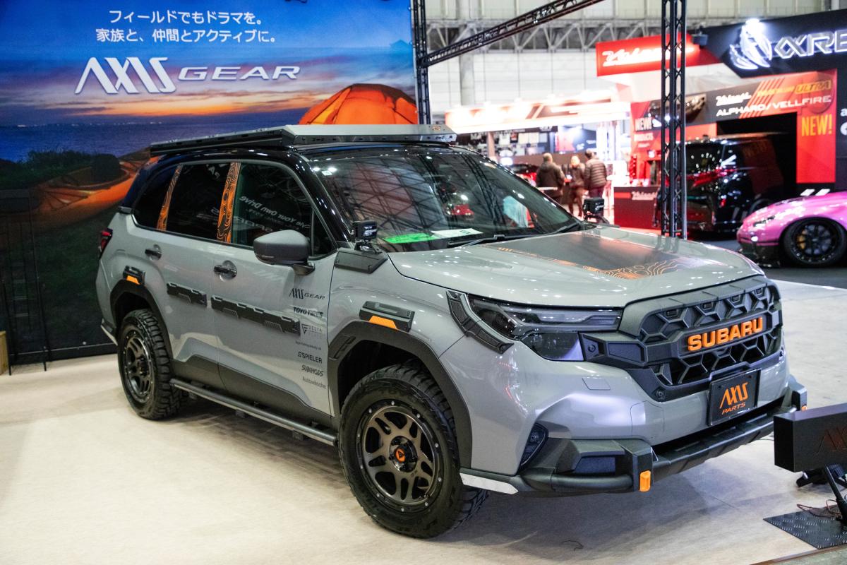 アーバンテイストの新型フォレスターにオフロード仕様のボディキットを装着。ドライカーボンを塗装仕上げとし、自然に溶け込む存在感でオーナーの感性を刺激。