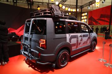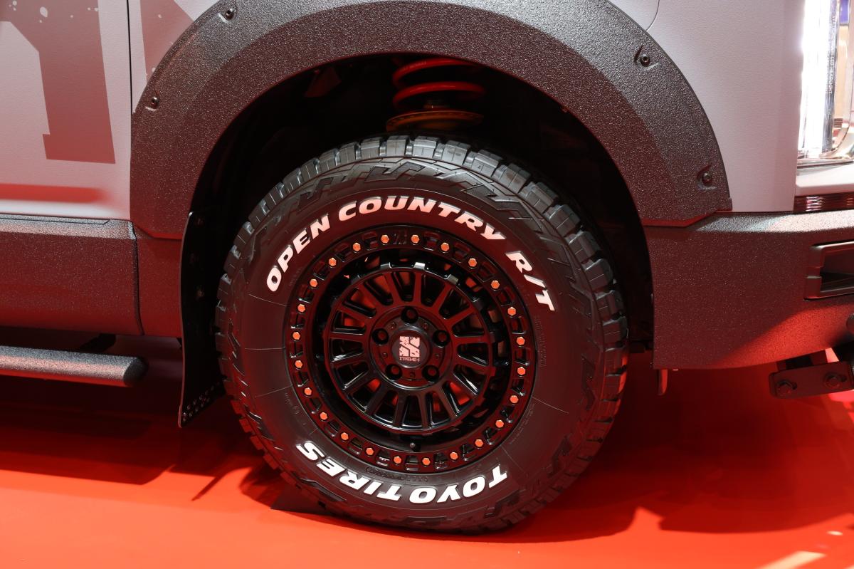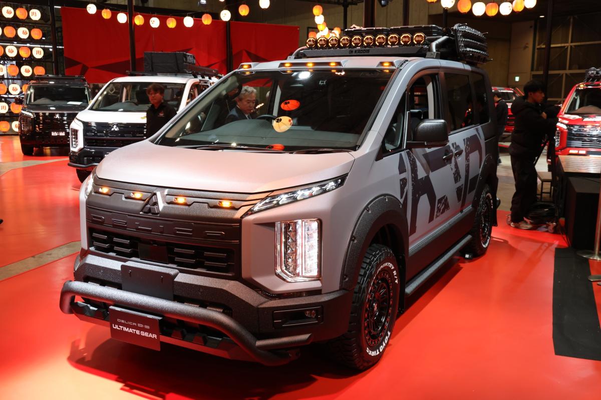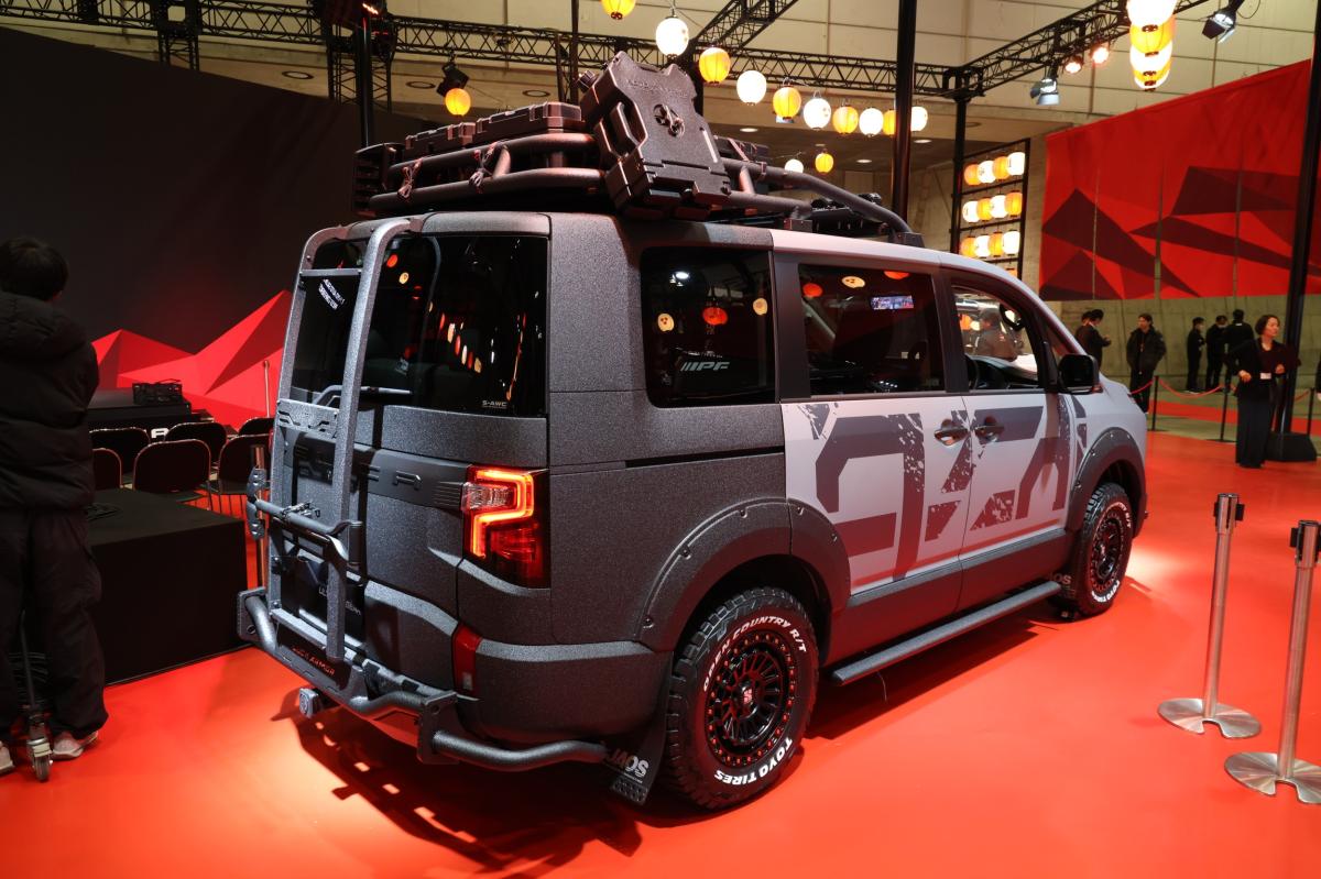 『デリカD:5』のタフさをさらに磨き上げ、悪路でも突き進んでいける力強さを表現した1台。30㎜のリフトアップに加え、悪路走行での衝撃から車体を守るバンパーガードを装着し、さらにオフロード環境での走行に適した、ザラザラとして傷が目立ちづらいラプター塗装を車両全体に施すことでワイルドな『デリカD:5』に仕上げています。