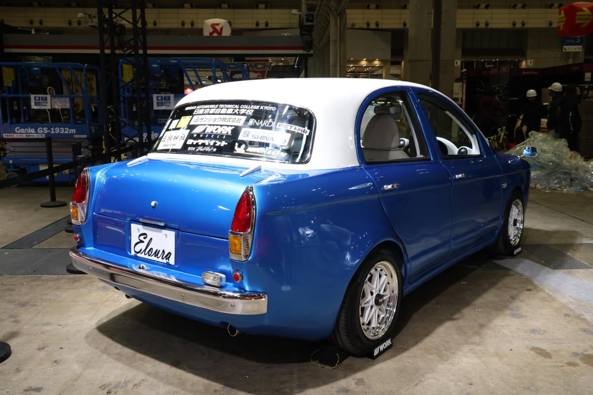 コンセプト「街乗りスタイル、デザインと走りに特化」キャッチコピー「時代を超えて輝くデザイン」 夫婦で車好きの女性をターゲットにした、K13マーチをベースに312ブルーバードの外装を組み合わせてパイクカー風のレトロなコンパクトセダンを作成しました