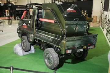 オリジナルカーゴ(荷箱)搭載、フロントアンダーガード、カンガルーバー、脱着式極太ロールバー、社外オーバーフェンダー、ルーフラック、作業ランプ、オリジナルシュノーケル、社外ウインチ、ヘッドランプスモーク