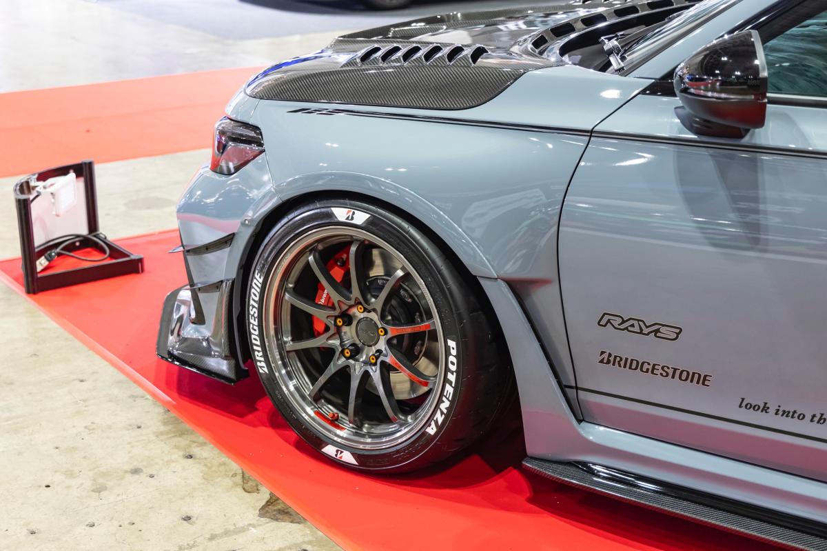 2024年TASでデビューしたARISING-1 EVO.1 をブラッシュアップしました。すべて保安基準範囲内のパーツで構成されていながら、各部に機能的なディティールを取り入れた、進化版エアロキットです。ストリートからサーキットまで楽しめる車両を展示します。