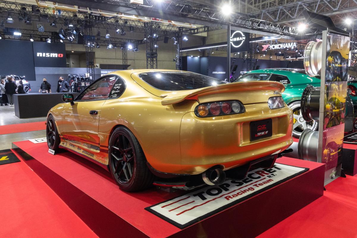 RB26DETT搭載のJZA80で最高速全盛期を戦ったトップシークレットの歴史を現代版にアップデート。R35GT-Rのパワーユニットを搭載し、エクステリアも新作のエアロパーツを投入。まだ暫定のため、今後は各部を煮詰めながらトップシークレットの新たな顔として世界に打って出る予定です。