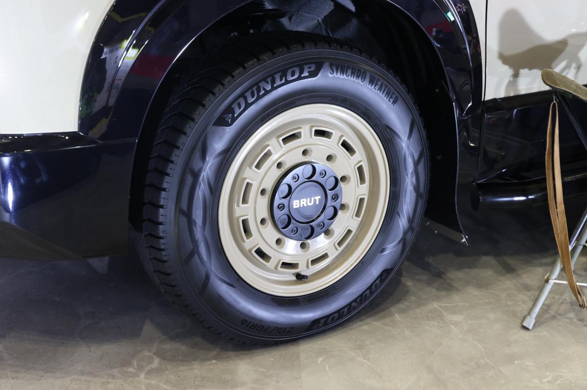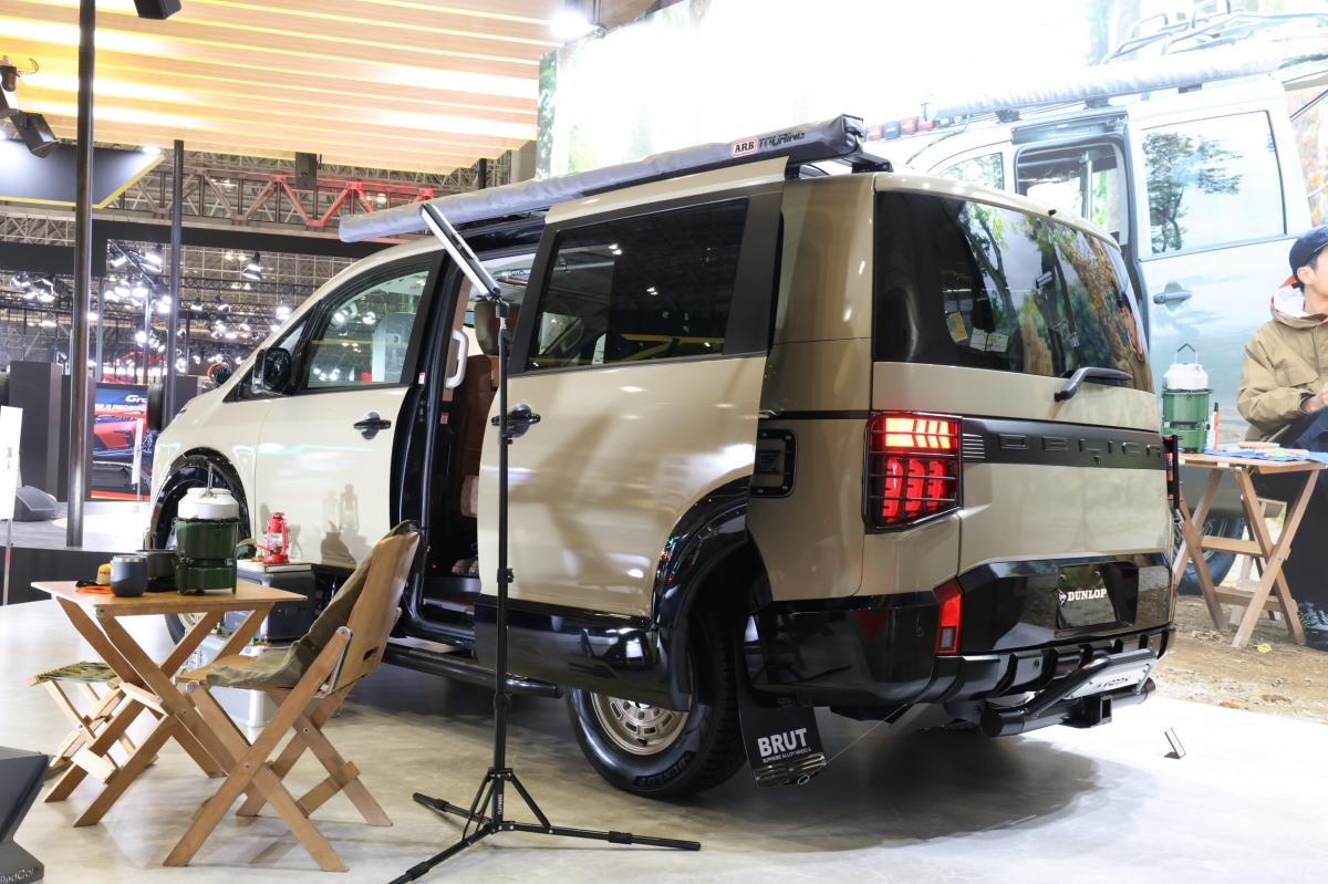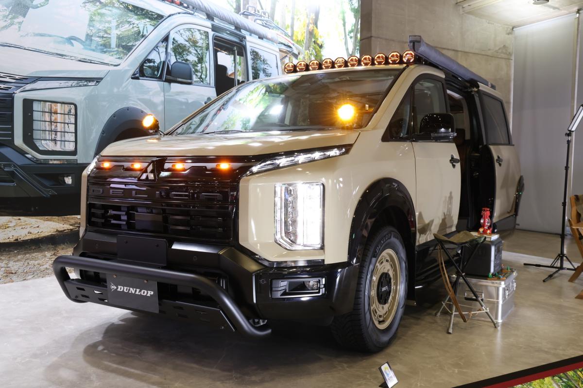「自分だけの屋根裏部屋」をテーマに鉄配管でインダストリアルなロフト空間を演出した新型デリカD:5のカスタムモデル。DUNLOP「SYNCHRO WEATHER」を装着し、雪や雨、乾いた路面でも安心して移動できる自由なカーライフと新しいアウトドアスタイルを提案します。