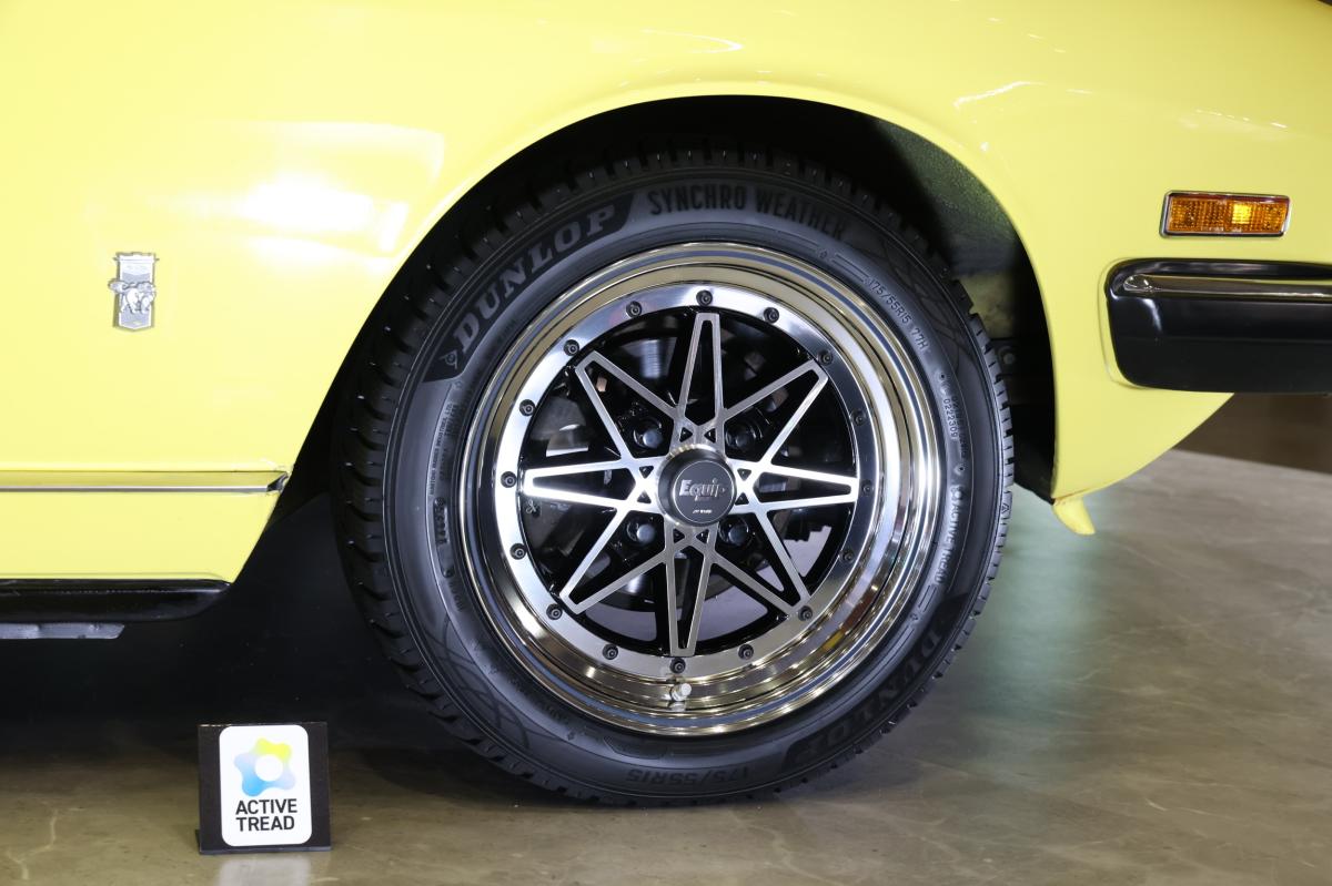 伝説的デザイナー、ジョルジェット・ジウジアーロが手がけた「いすゞ117クーペ」。そのクラシックな美しさに、DUNLOPの次世代オールシーズンタイヤ「SYNCHRO WEATHER」を組み合わせることで、往年の名車でも現代の安心と自由な走りを実現しました。SYNCHRO WEATHERは雪上・氷上・濡れた路面・乾いた路面といった様々な環境に対応し、季節や天候を問わずカーライフを楽しむことができます。クラシックカーオーナーが悩みがちな滑りやすさやタイヤ交換の手間も軽減し、日常の外出から遠出まで行動範囲を広げてくれる存在です。古き良きクルマと最先端タイヤの融合が、豊かなライフスタイルを叶える1台です。