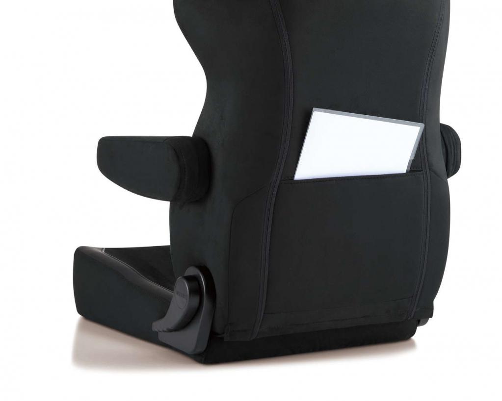 ロングドライブに必要なクッション性は確保しながら、サイドサポートを浅くしたフラットな座面設計により、乗り込み位置の高いバン系の車種に装着した場合、特に重要となる乗降性を高めています。