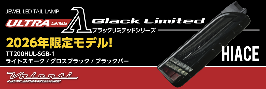 【オートサロン開催前直前情報】2026年限定モデル200ハイエース用ジュエル LED テールランプ ULTRA λ(ラムダ)ブラックリミテッド(ライトスモーク/グロスブラック/ブラックバー)をヴァレンティブースにて先行受注いたします。