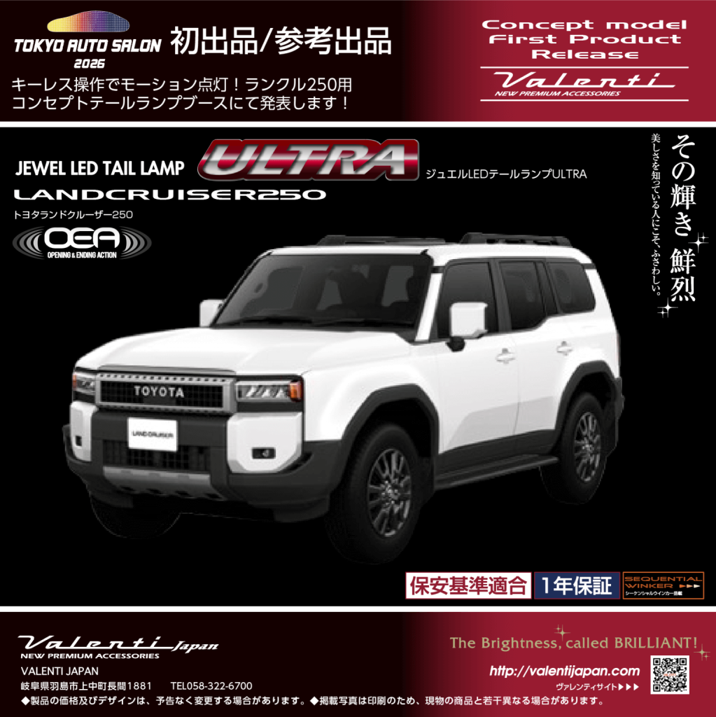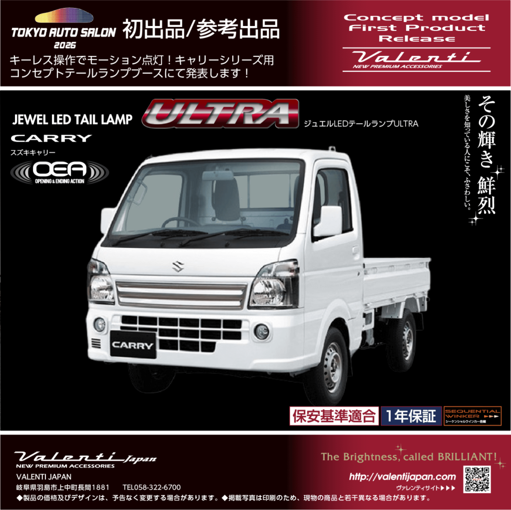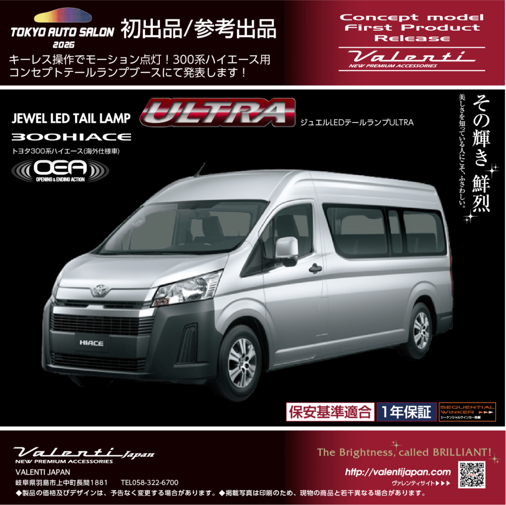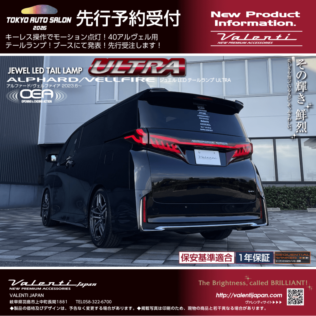 ヴァレンティは、2026年1月9日(金)~1月11日(日)千葉県幕張メッセにて開催の東京オートサロン2026に出展します。